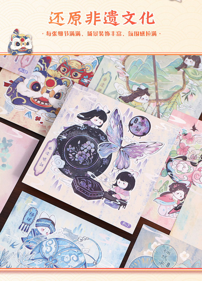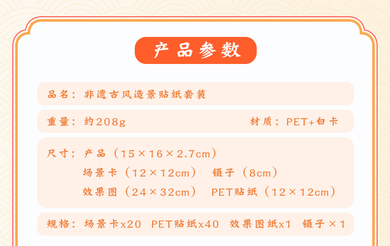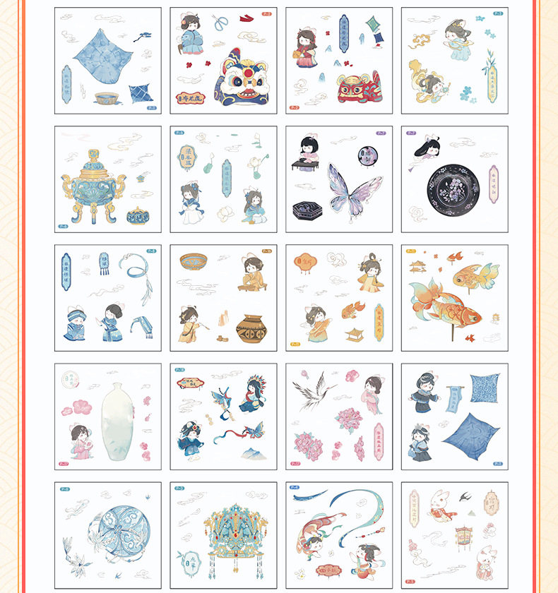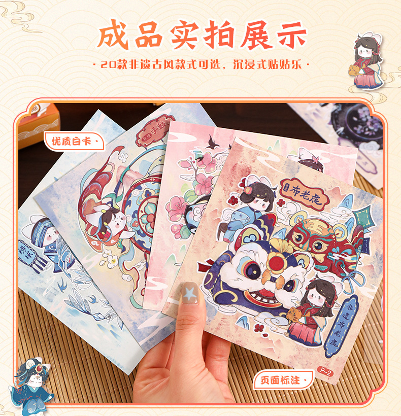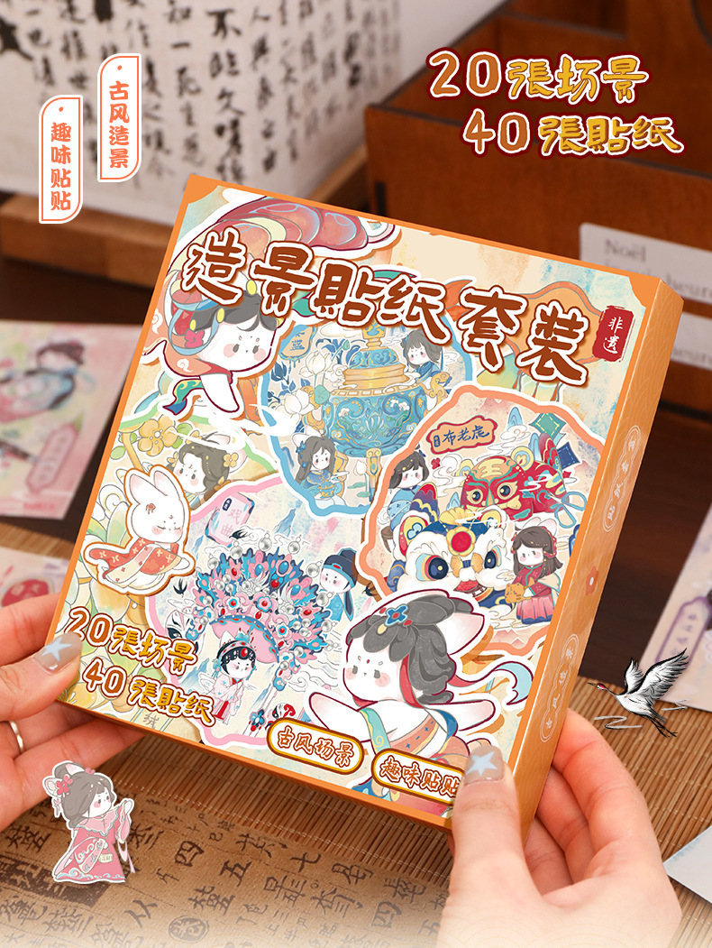 고대 스타일 조경 스티커 조합 세트, 중국 스타일 미니어처 멀티 시나리오 핸드북, 어린이 교육 장난감 스티커 크리에이티브