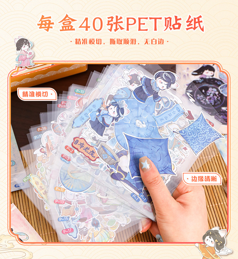 고대 스타일 조경 스티커 조합 세트, 중국 스타일 미니어처 멀티 시나리오 핸드북, 어린이 교육 장난감 스티커 크리에이티브스토어 가기