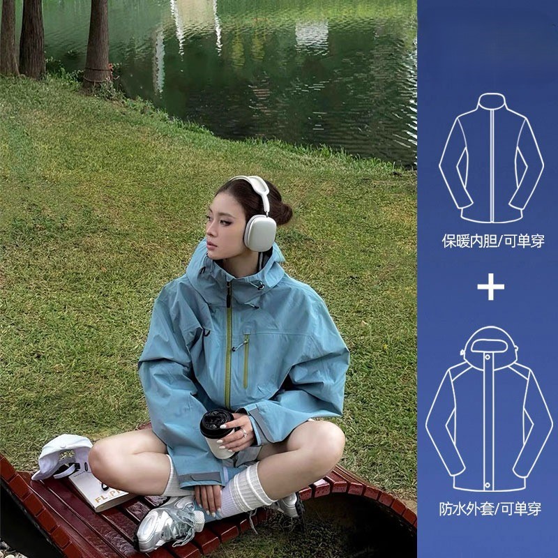 버드홈 아웃도어 방풍 방수 3-in-1 재킷 여성용 탈부착 가능 2025 가을 겨울 신상 남성 등산복스토어 가기