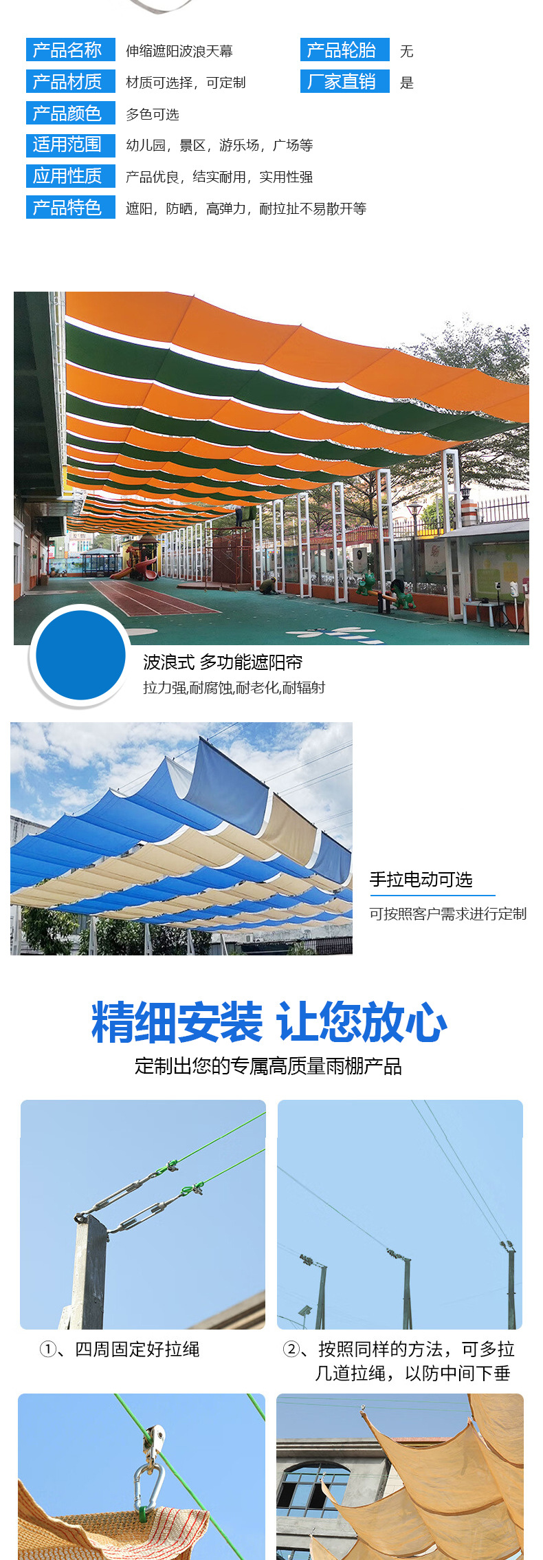 야외 전기 차양, 차양망, 차양, 유치원, 학교 수영장, 놀이터, 웨이브 캐노피 제조업체스토어 가기