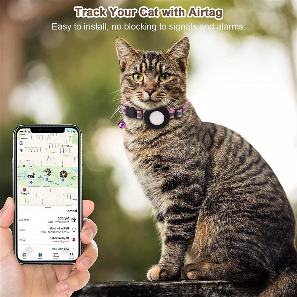 Amazon 국경 간 베스트셀러 Airtag 고양이 목걸이 벨 Airtag 반사 발자국 목걸이 포지셔닝스토어 가기