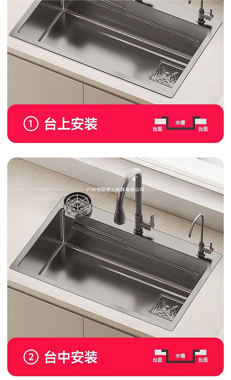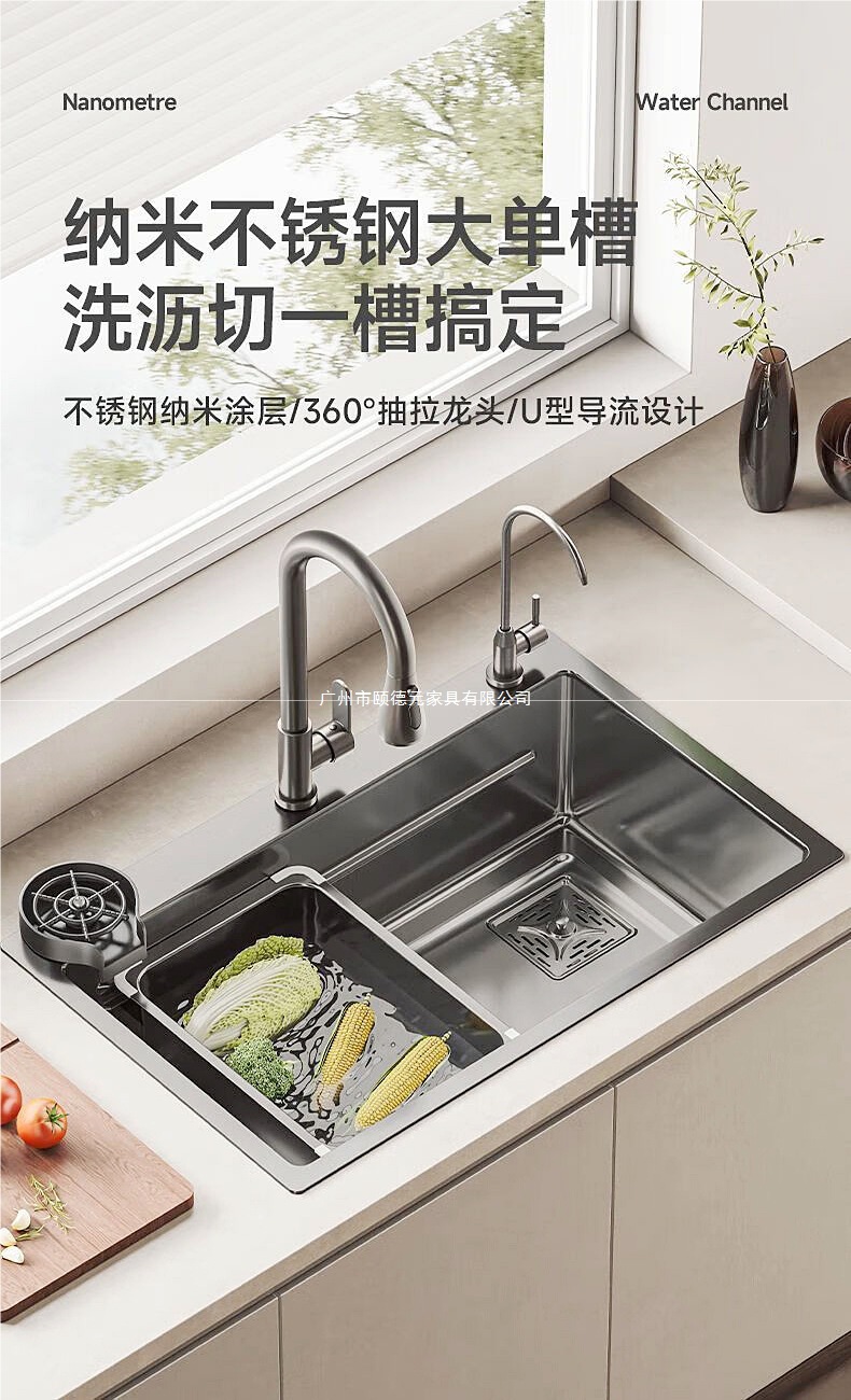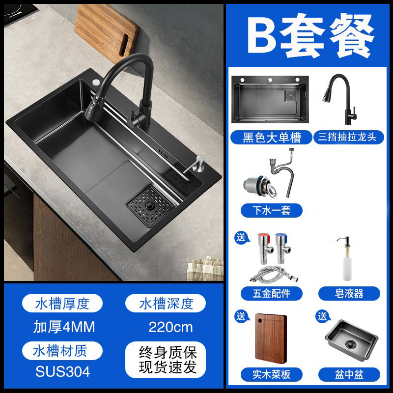 • 특대 4.0 블랙—80*45 [패키지 B] 3단 인출식 수도꼭지 + 비누 디스펜서