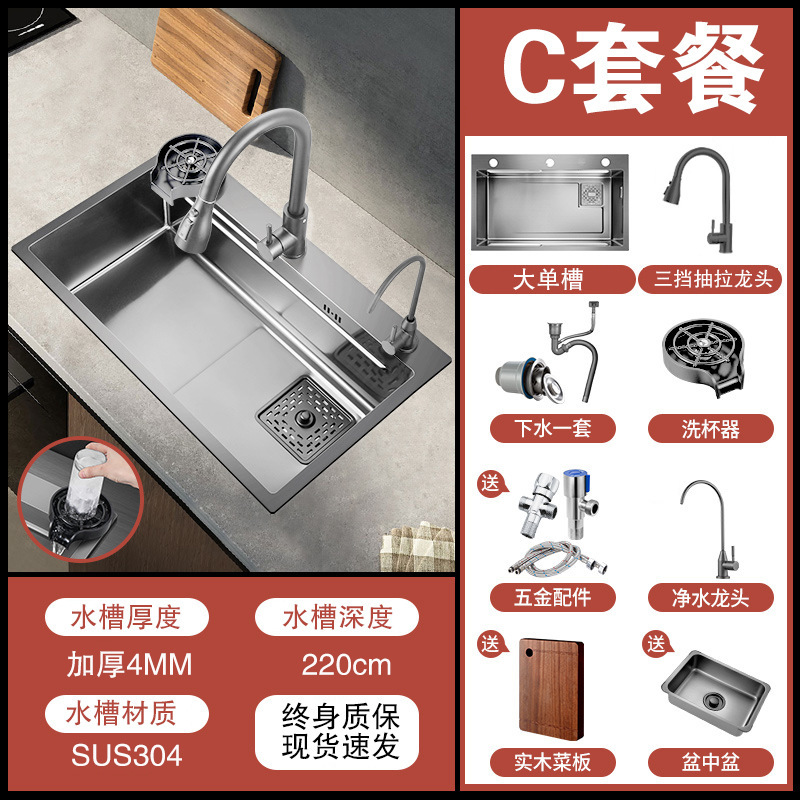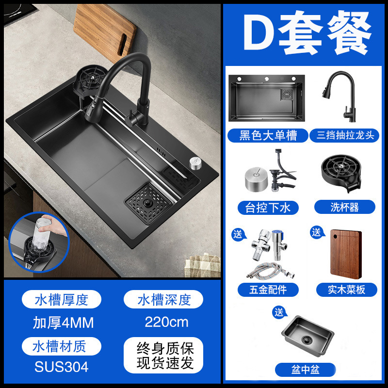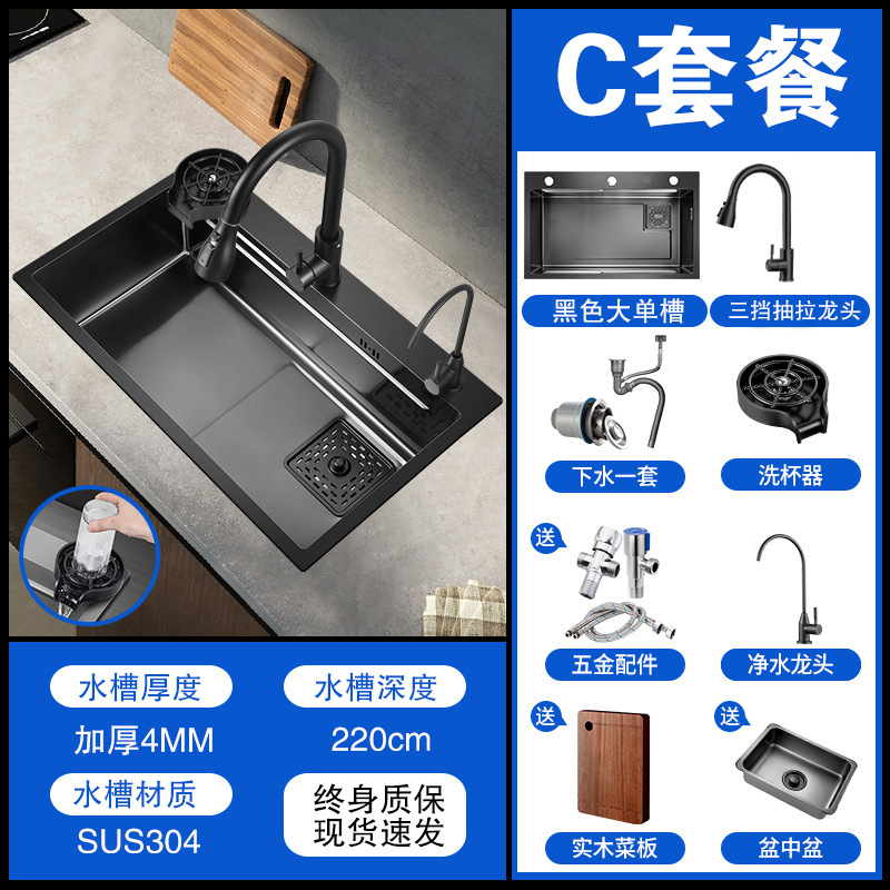• 특대 4.0 블랙—75*45 [패키지 B] 3단 인출식 수도꼭지 + 비누 디스펜서