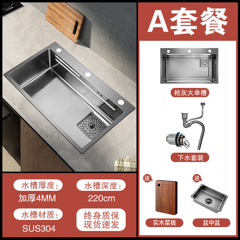 주방 싱크대 대형 단일 슬롯 4MM 두꺼운 304 스테인레스 스틸 싱크 가정용 식기 세척 싱크대 싱크대 언더 카운터 싱크