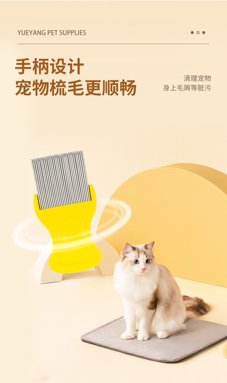 국경 간 인기 판매 고양이 벼룩 빗, 고양이 고밀도 치아 빗, 애완견 강철 빗, 벼룩 제거 빗, 긴 머리용 벼룩 제거 빗