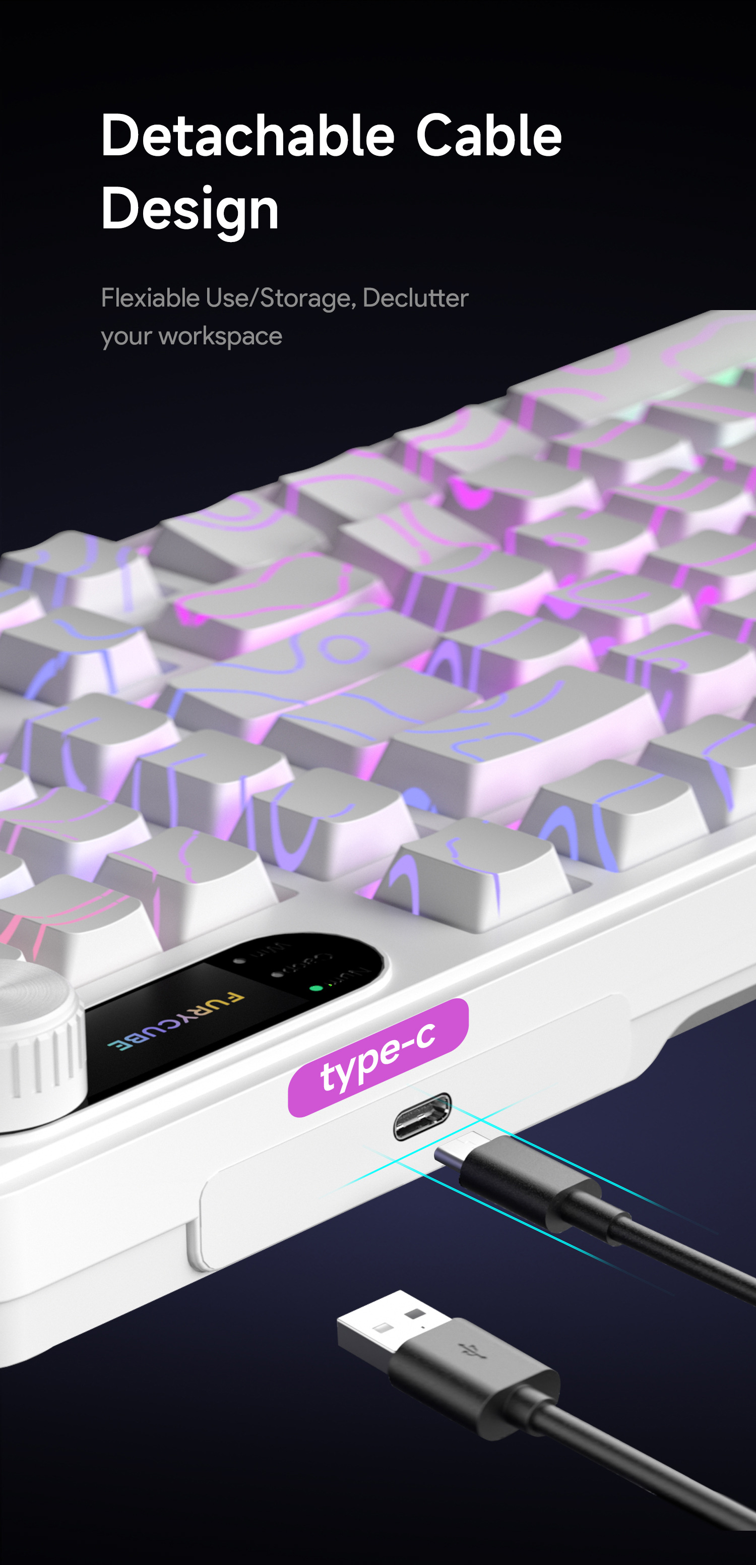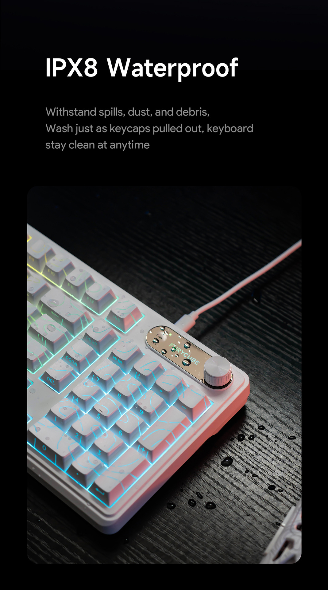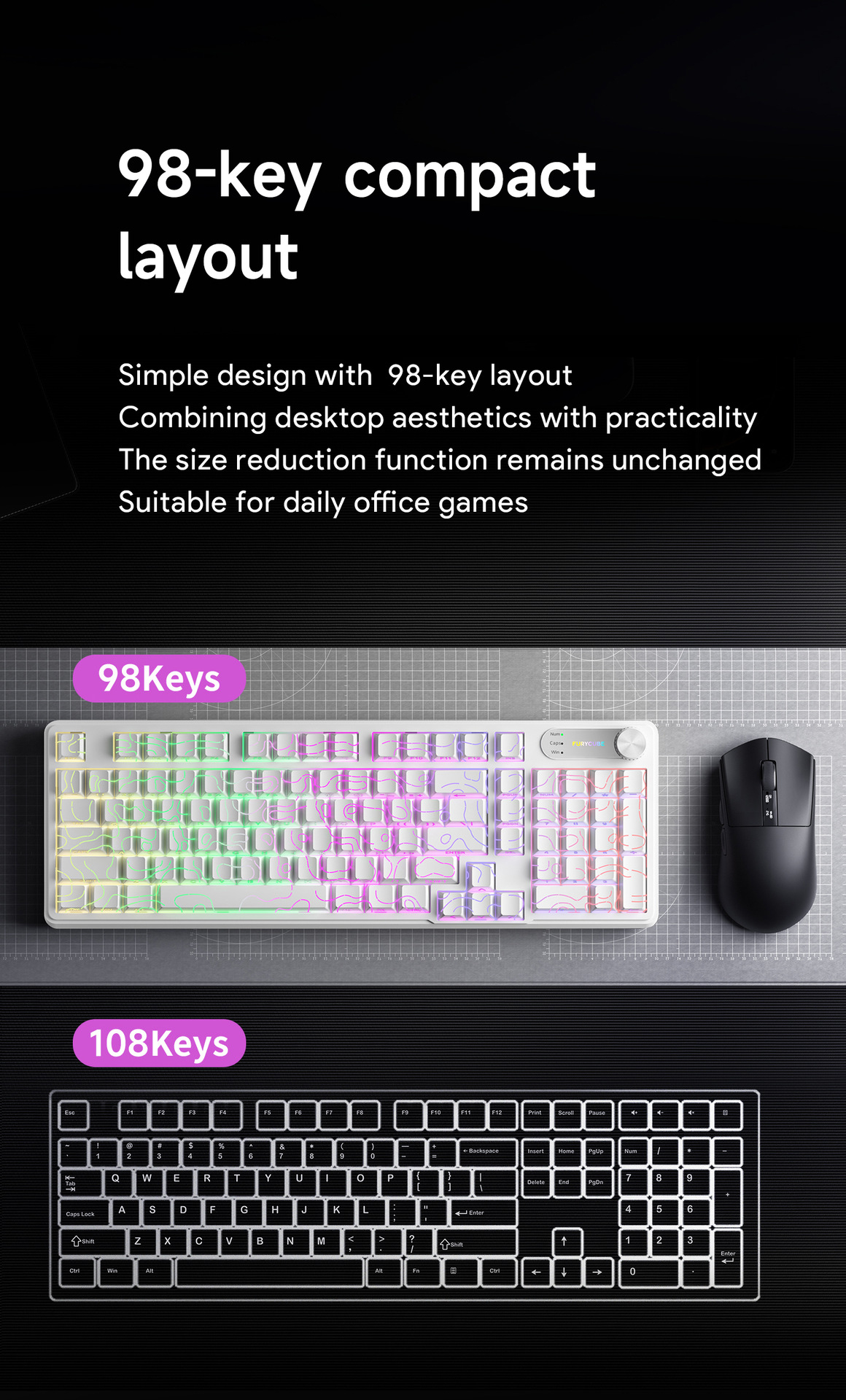 • 98키 - 흰색 등고선 [3모드 유선 + 무선 2.4g + 블루투스] RGB - 방수