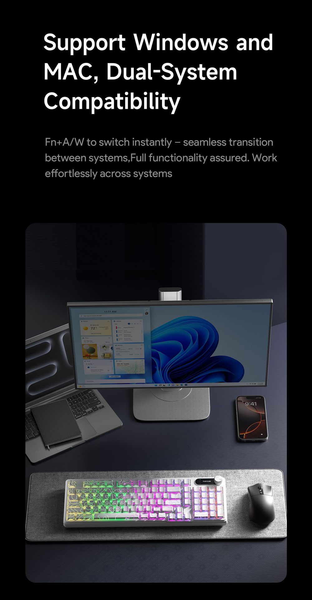 FURYCUBE IP98 3모드 무선 키보드 방수 기계적 느낌 조용한 소녀의 멋진 e-스포츠 키보드