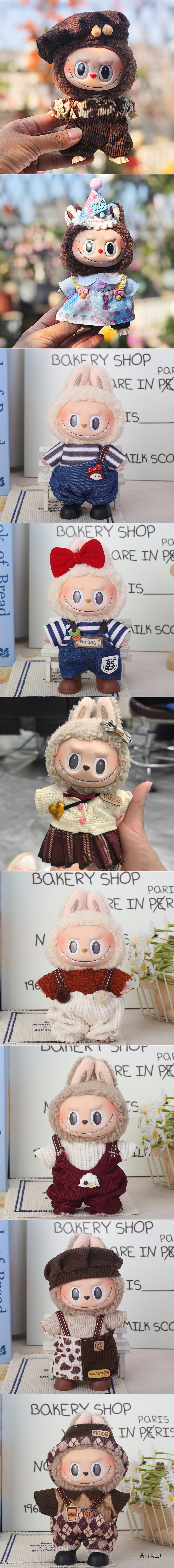 Labubu 아기 옷 3 세대 오리지널 Labubu 의류 스탠딩 17cm 인형 떡볶이 새우 인형 귀여운 수제 옷스토어 가기