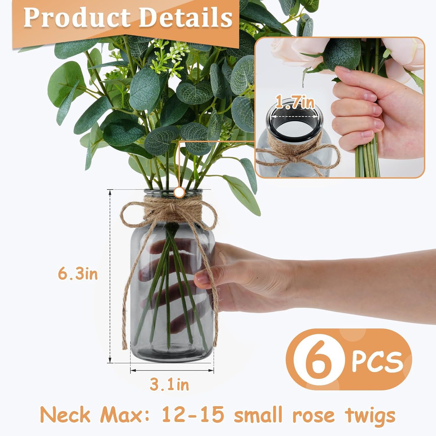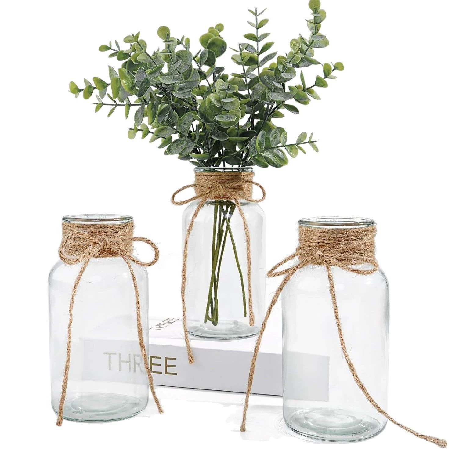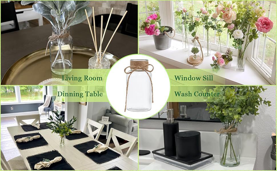 아마존과 같은 유리 꽃병, 가벼운 고급 대마 로프 꽃병, 컬러 유리 병, 거실 장식, 데스크탑 장식품스토어 가기