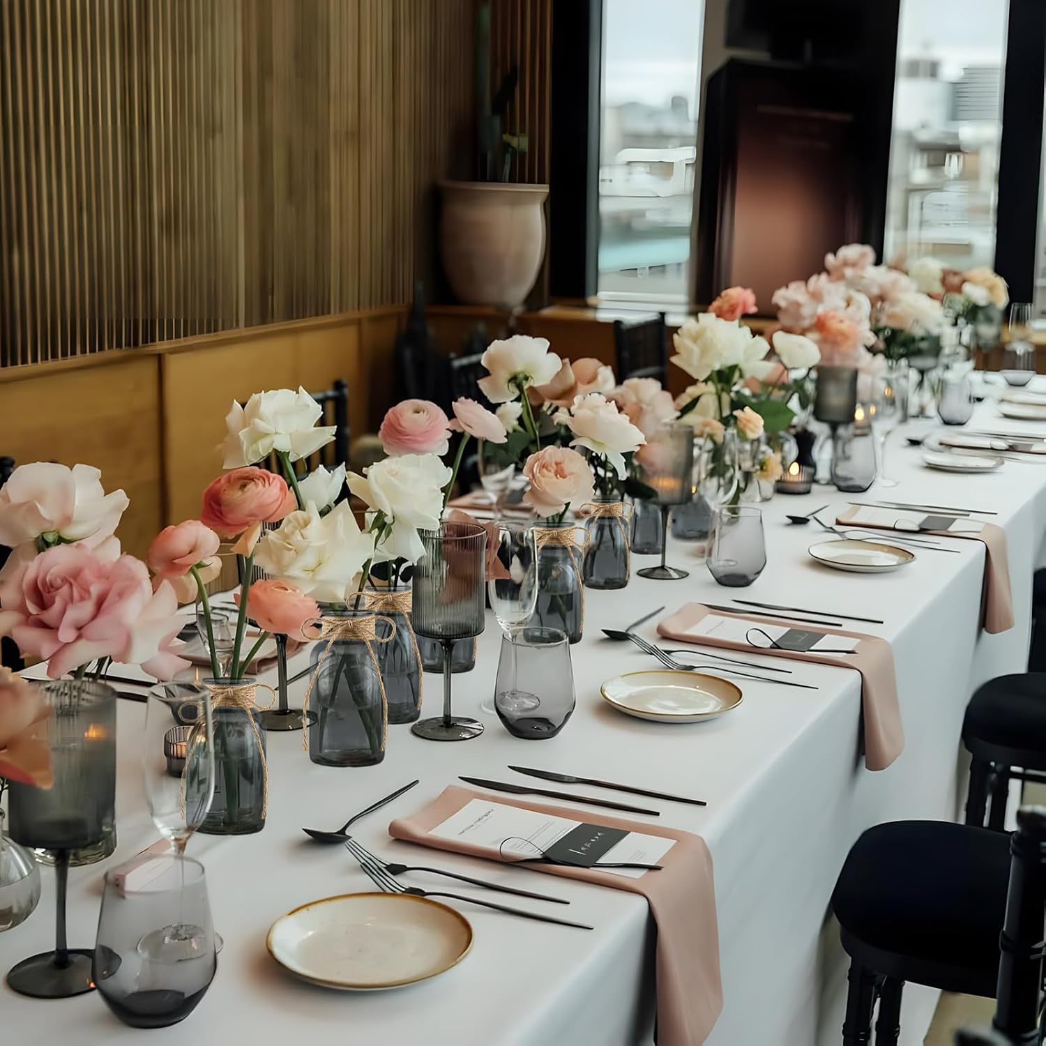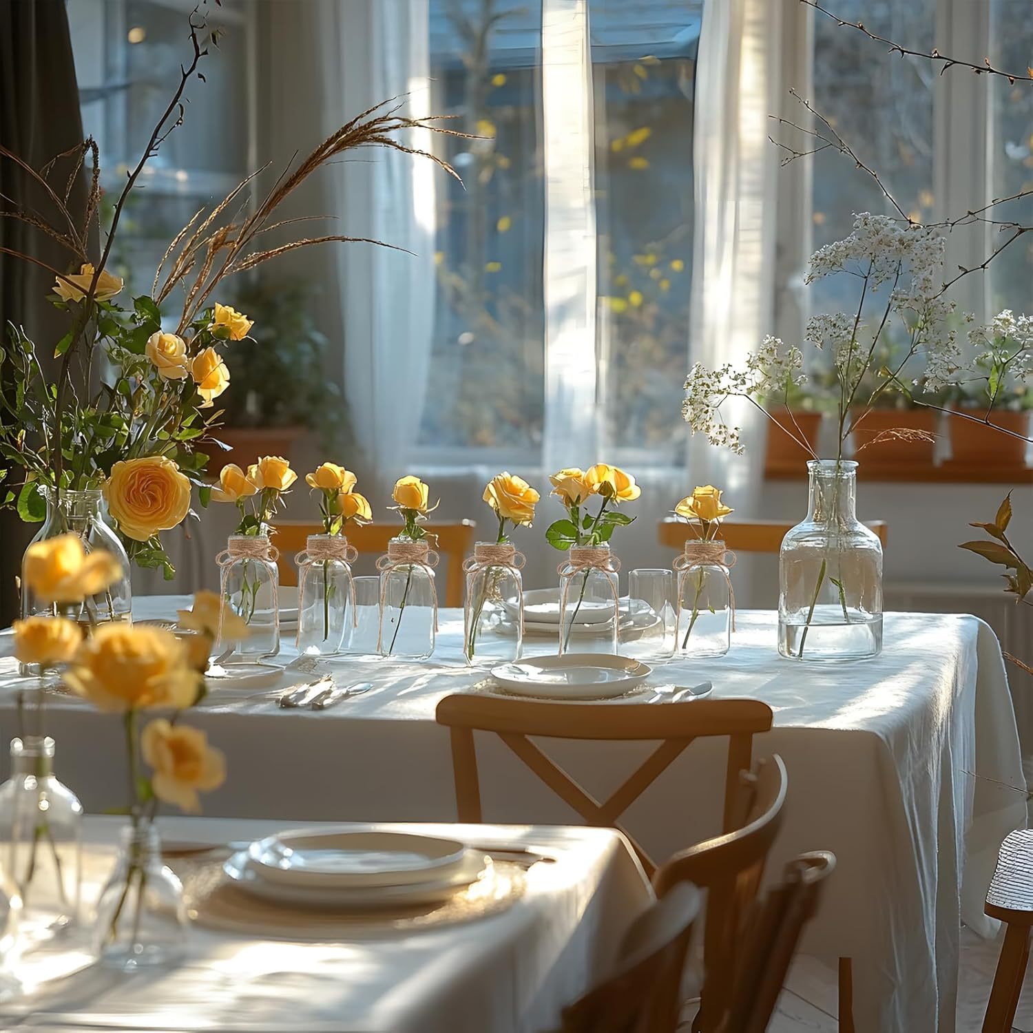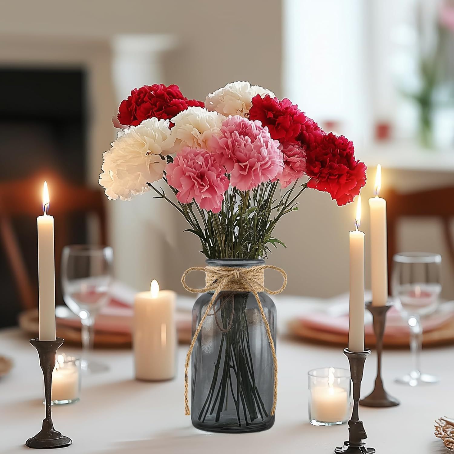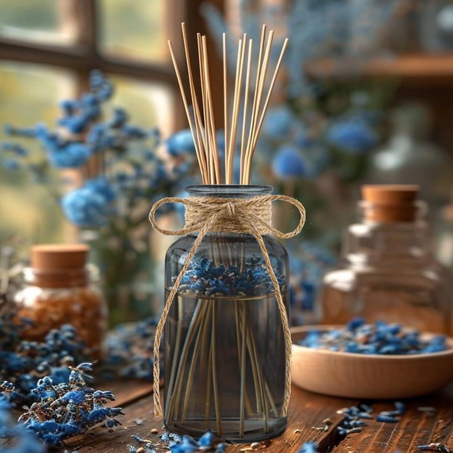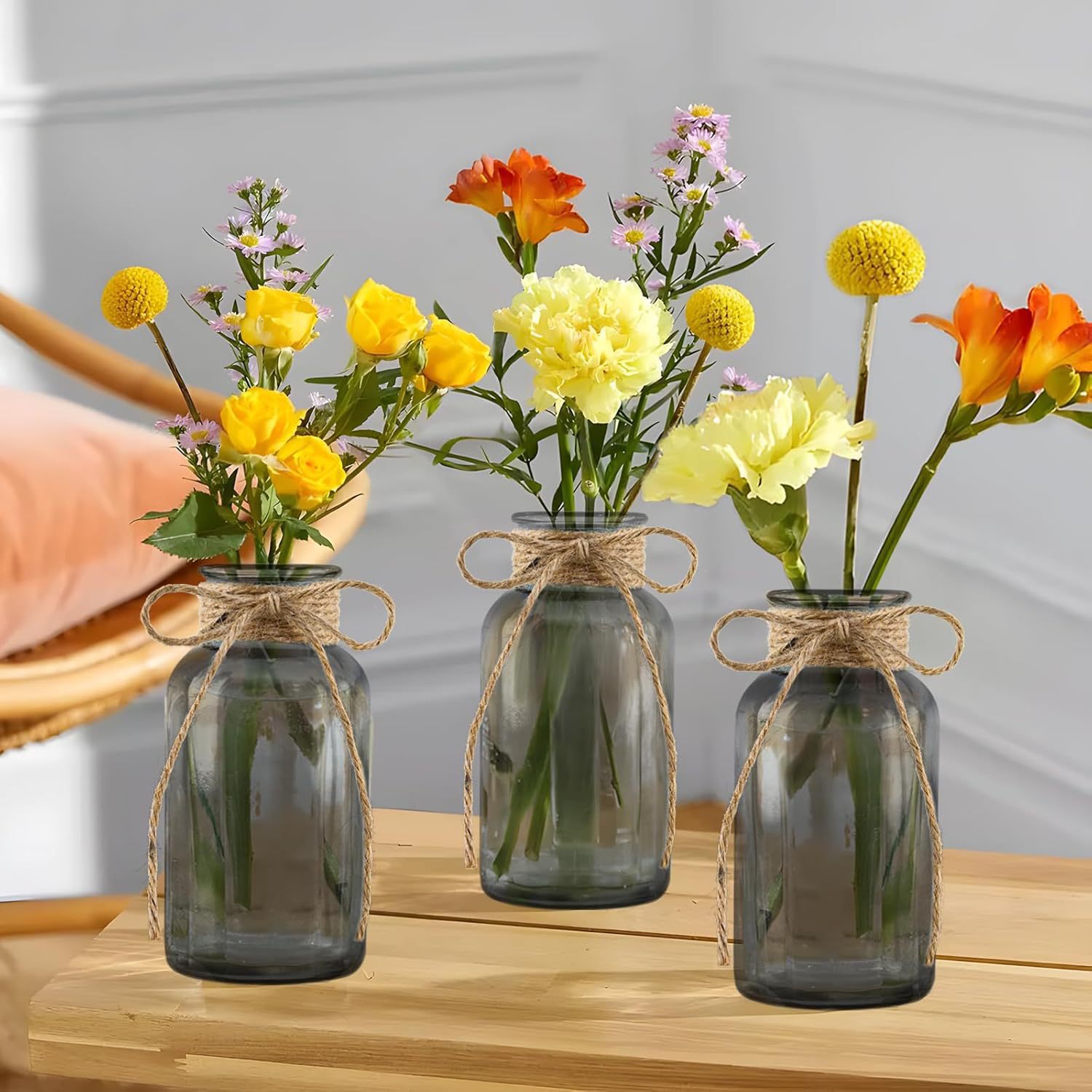 아마존과 같은 유리 꽃병, 가벼운 고급 대마 로프 꽃병, 컬러 유리 병, 거실 장식, 데스크탑 장식품