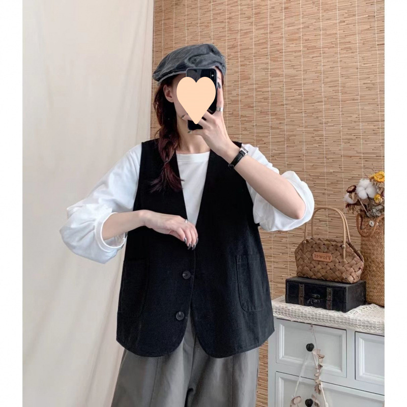 여성을 위한 일본 문학적 레이어드 외부 조끼 2025 봄 스타일 루즈하고 다재다능한 솔리드 컬러 워싱 코튼 모리 스타일 복고풍 조끼