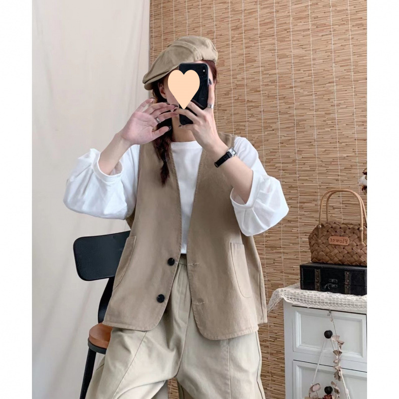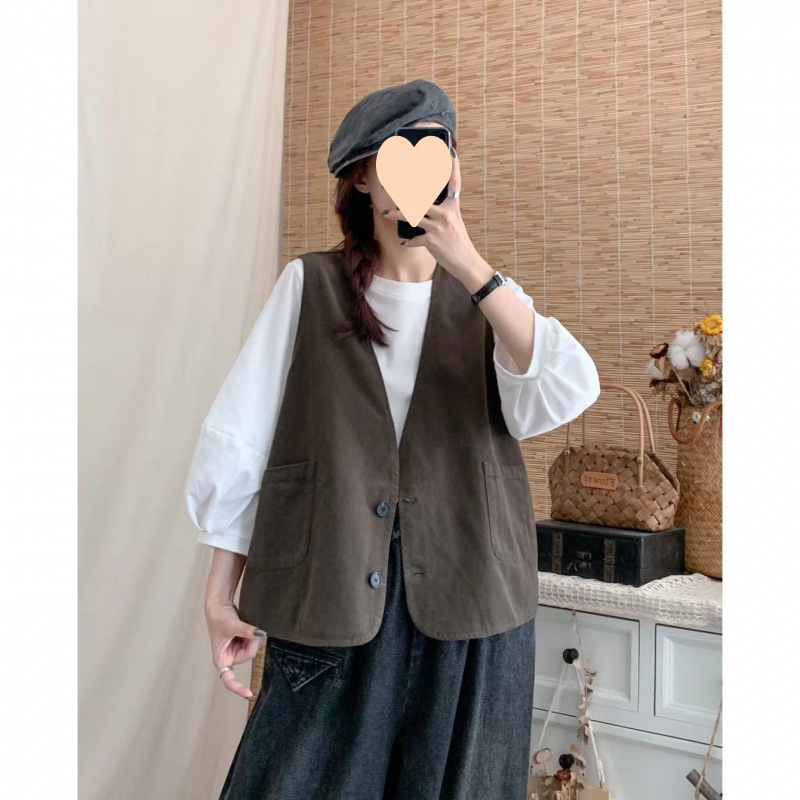 여성을 위한 일본 문학적 레이어드 외부 조끼 2025 봄 스타일 루즈하고 다재다능한 솔리드 컬러 워싱 코튼 모리 스타일 복고풍 조끼스토어 가기
