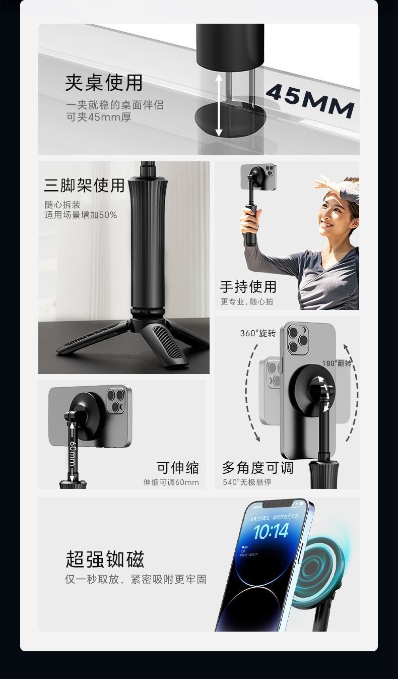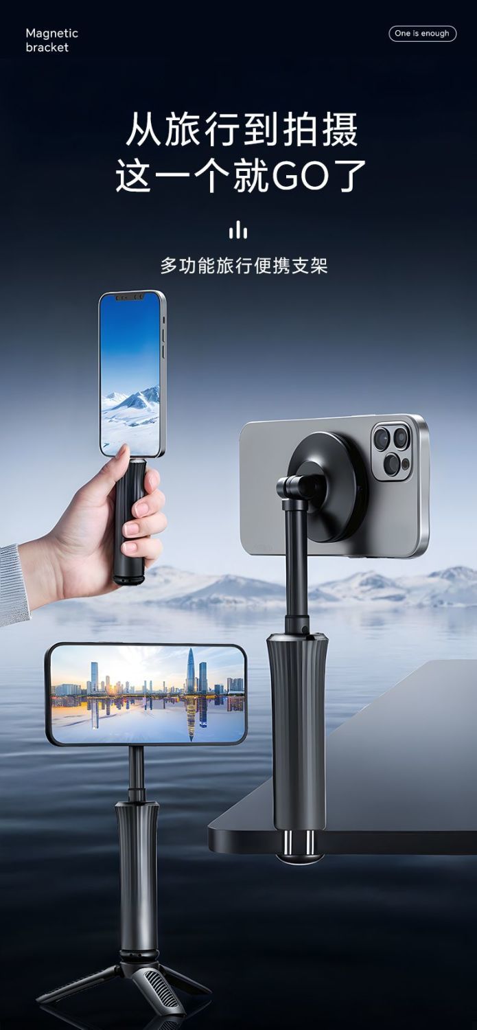 휴대 전화 마그네틱 홀더 여행 접이식 텔레스코픽 휴대용 출장 휴대용 촬영 삼각대 미니 셀카 스틱스토어 가기