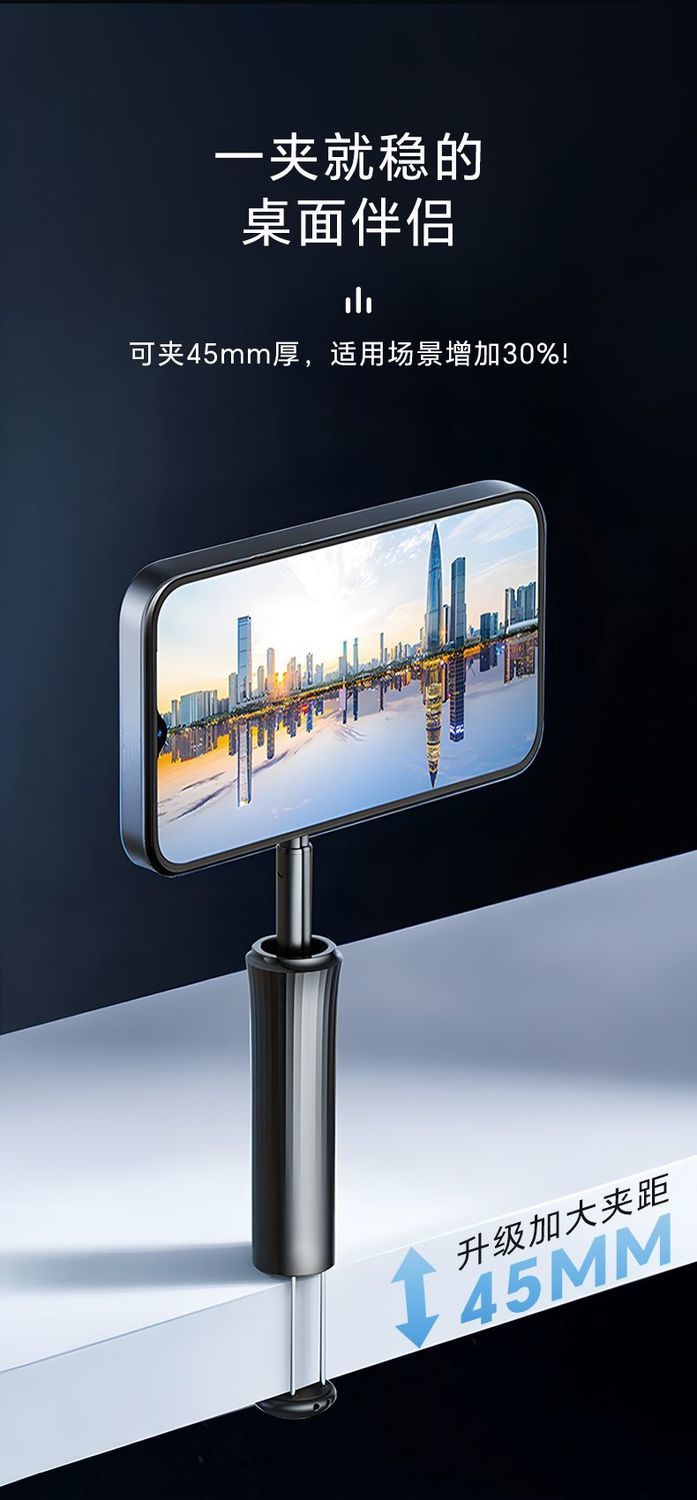 • [블랙] 자석 휴대폰 홀더 - 클램프 테이블/삼각대/휴대용
