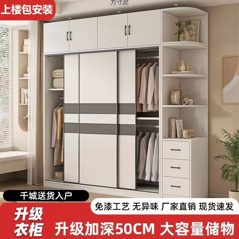 간단한 옷장 홈 침실 슬라이딩 도어 마스터 침실 수납 옷장 간단한 조립 임대 작은 아파트 캐비닛스토어 가기