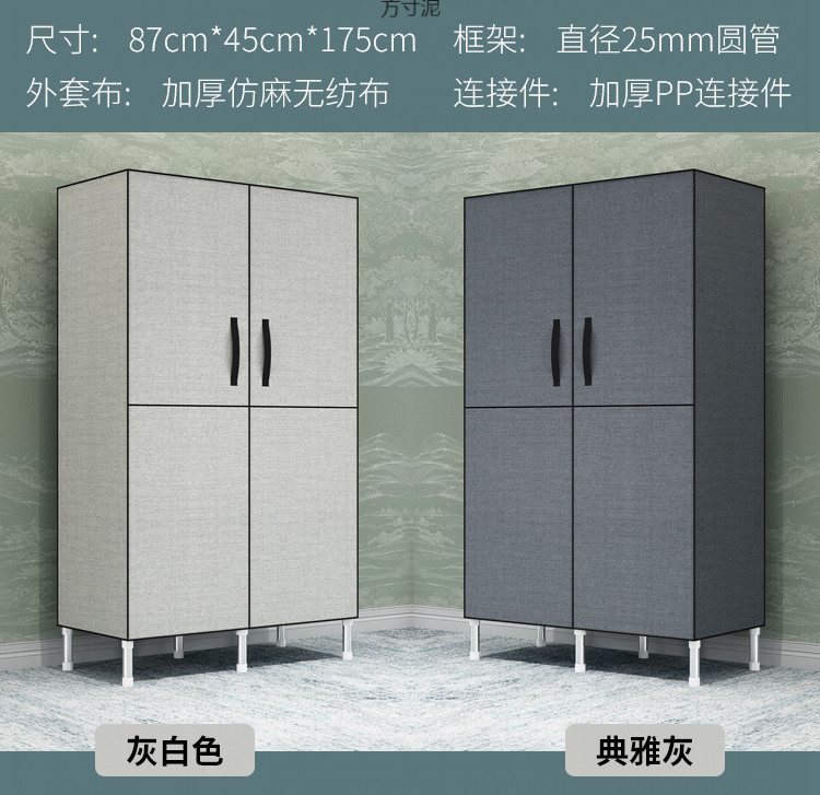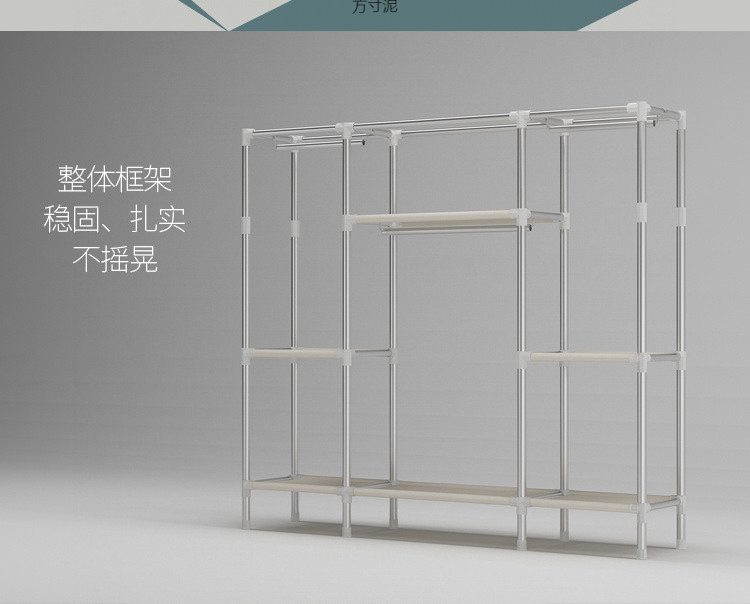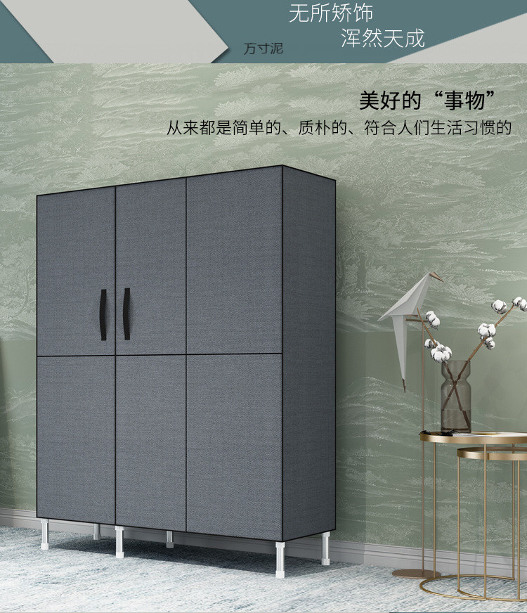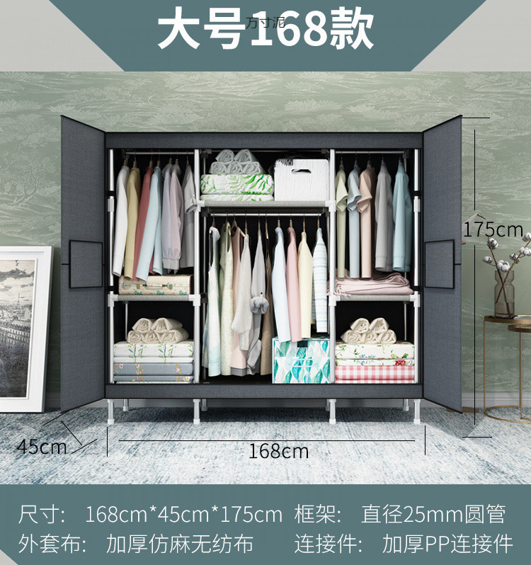 간편 조립 옷장 침실용 더블 패브릭 수납장 실용적인 천 옷장 강철 파이프 강화 스틸 프레임 도매스토어 가기
