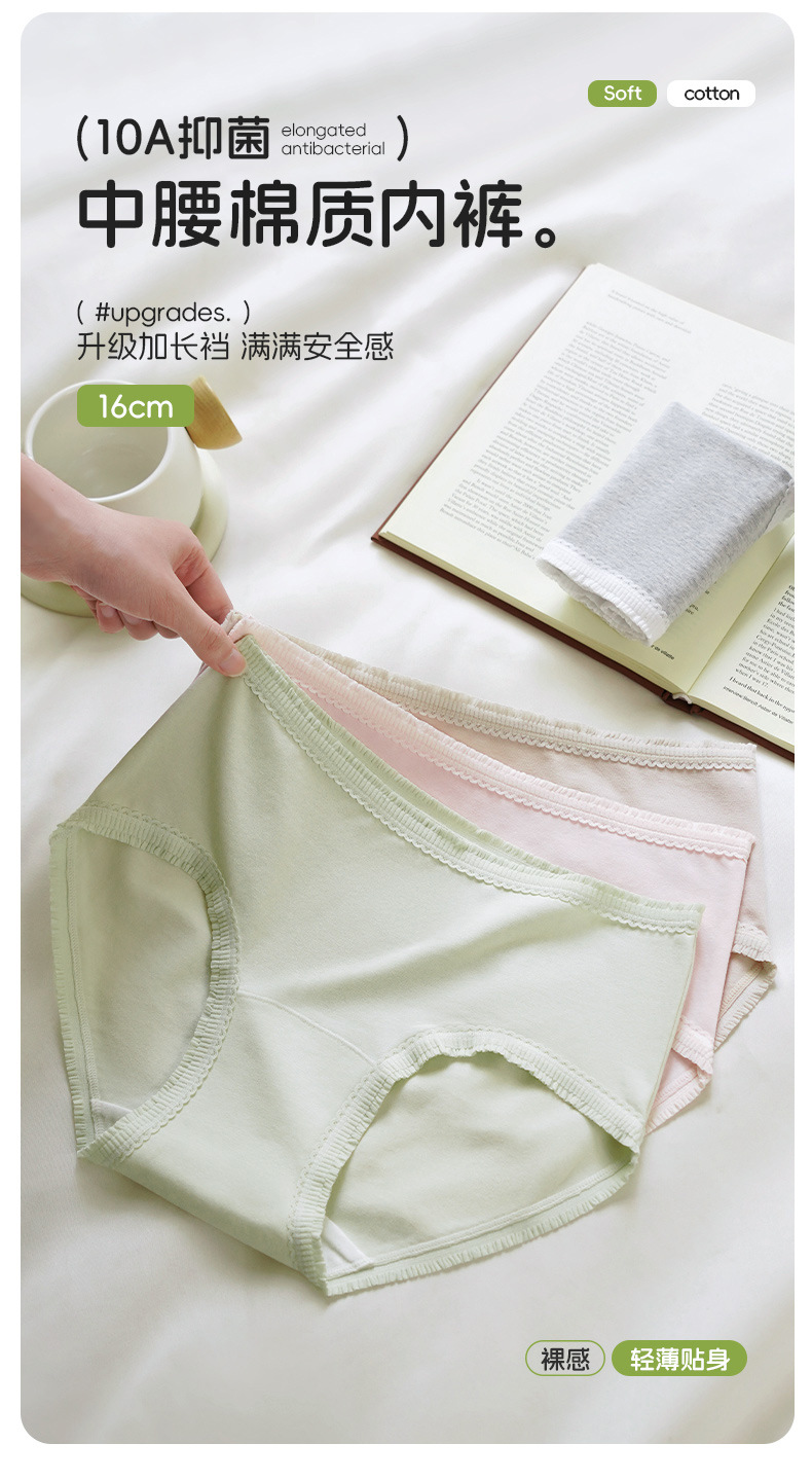 중간 허리면 소재 속옷 10A 항균 연장형 순면 가랑이 통기성 편안함 힙업 반바지 흡습 발한 삼각팬티