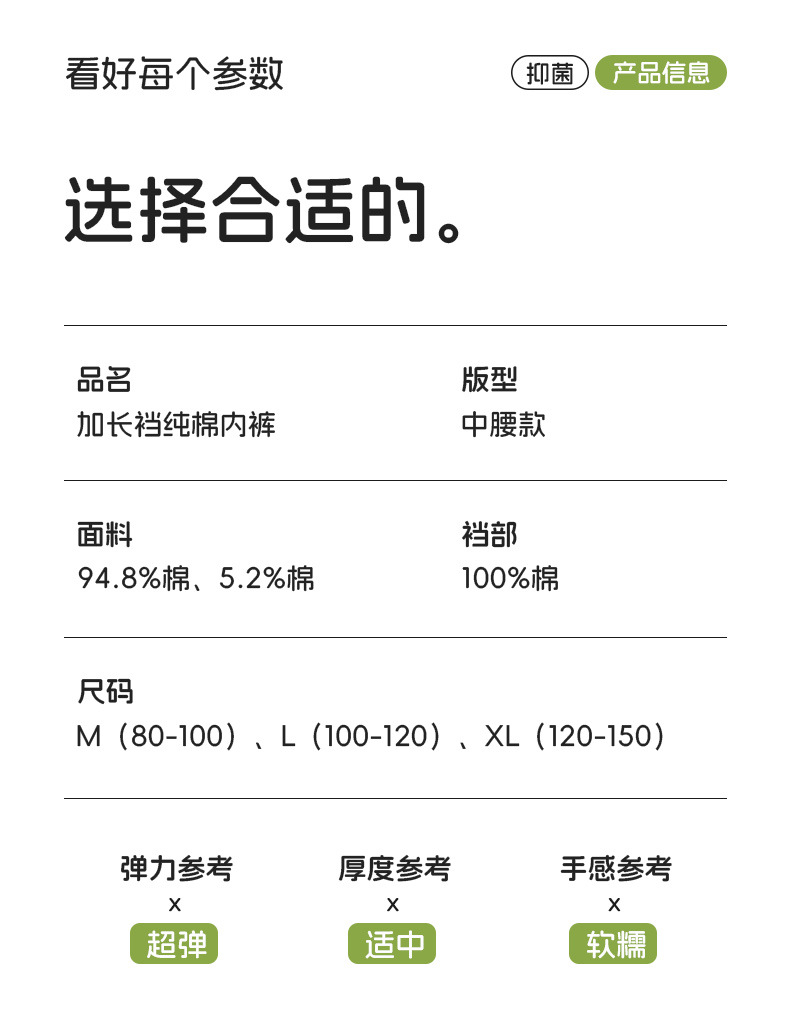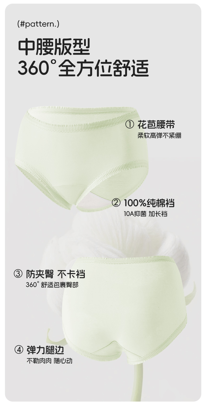 中腰纯棉内裤10A抑菌加长裆透气舒适提臀短裤吸湿排汗亲肤三角裤