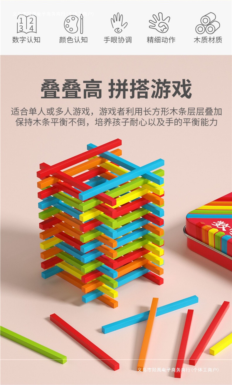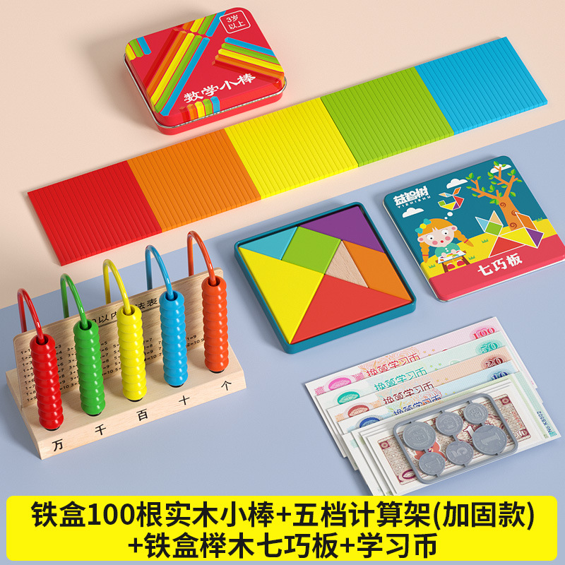 • 100개의 단단한 나무 사각 막대 + 5단 계산대(강화 버전) + 철 상자 너도밤나무 탱그램 + 학습 동전 풀 세트