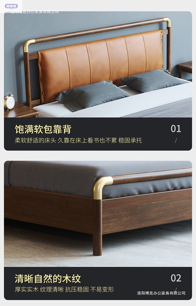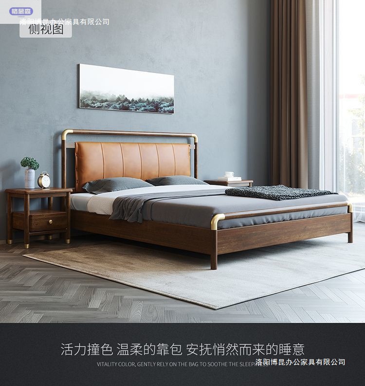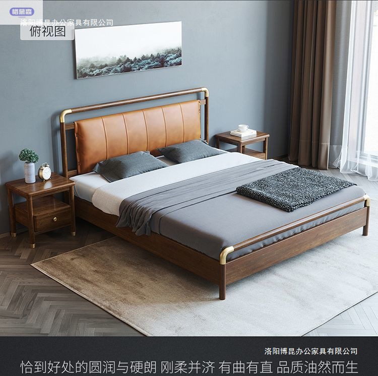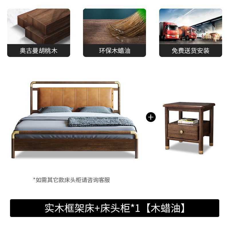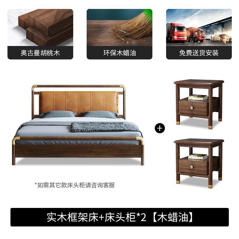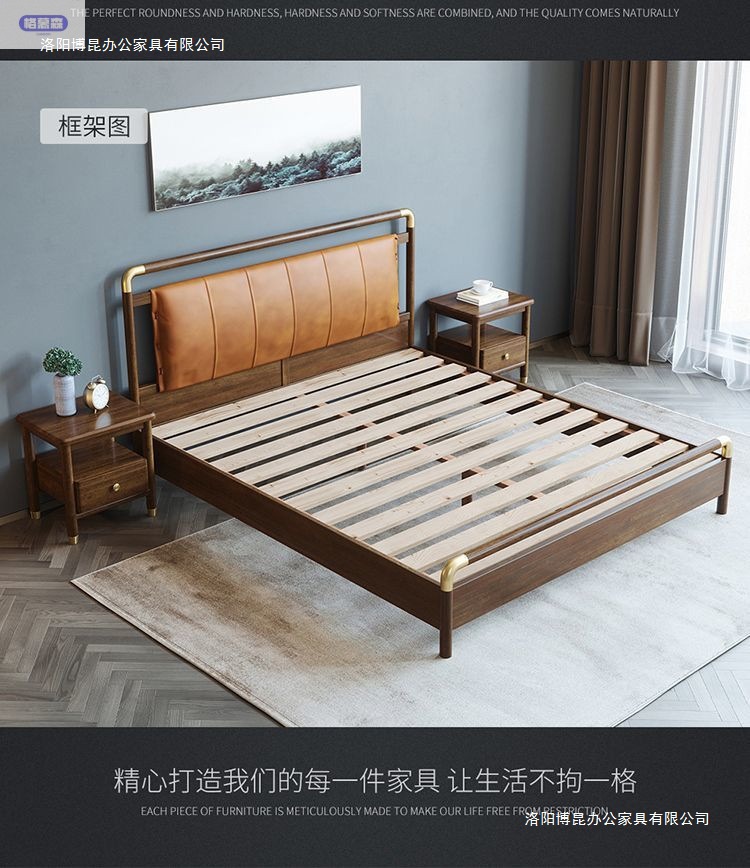 호두나무 침대, 모던하고 심플한 마스터 침실, 더블 침대, 부드러운 등받이, 홈 웨딩 침대, 대형 원목 모델스토어 가기