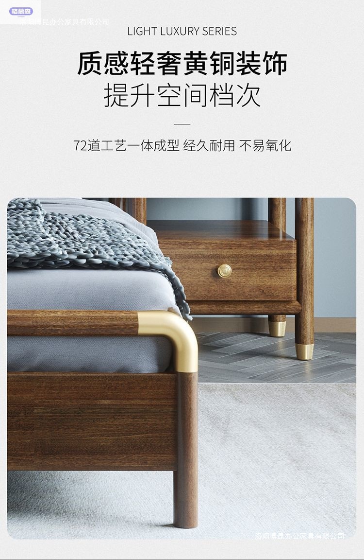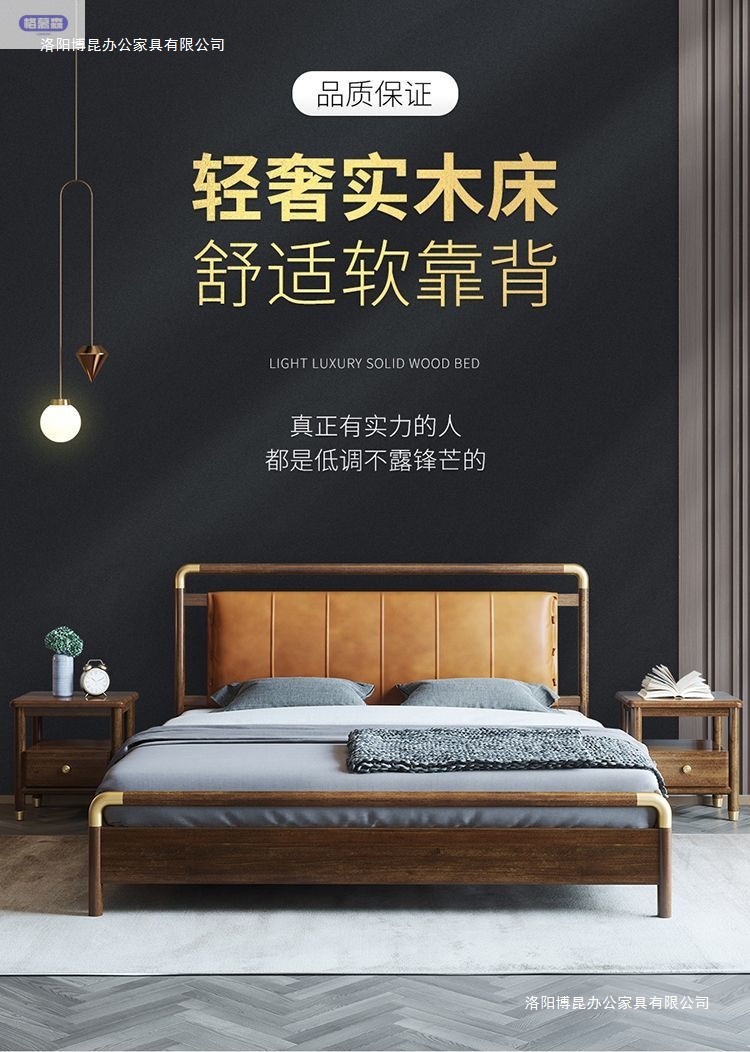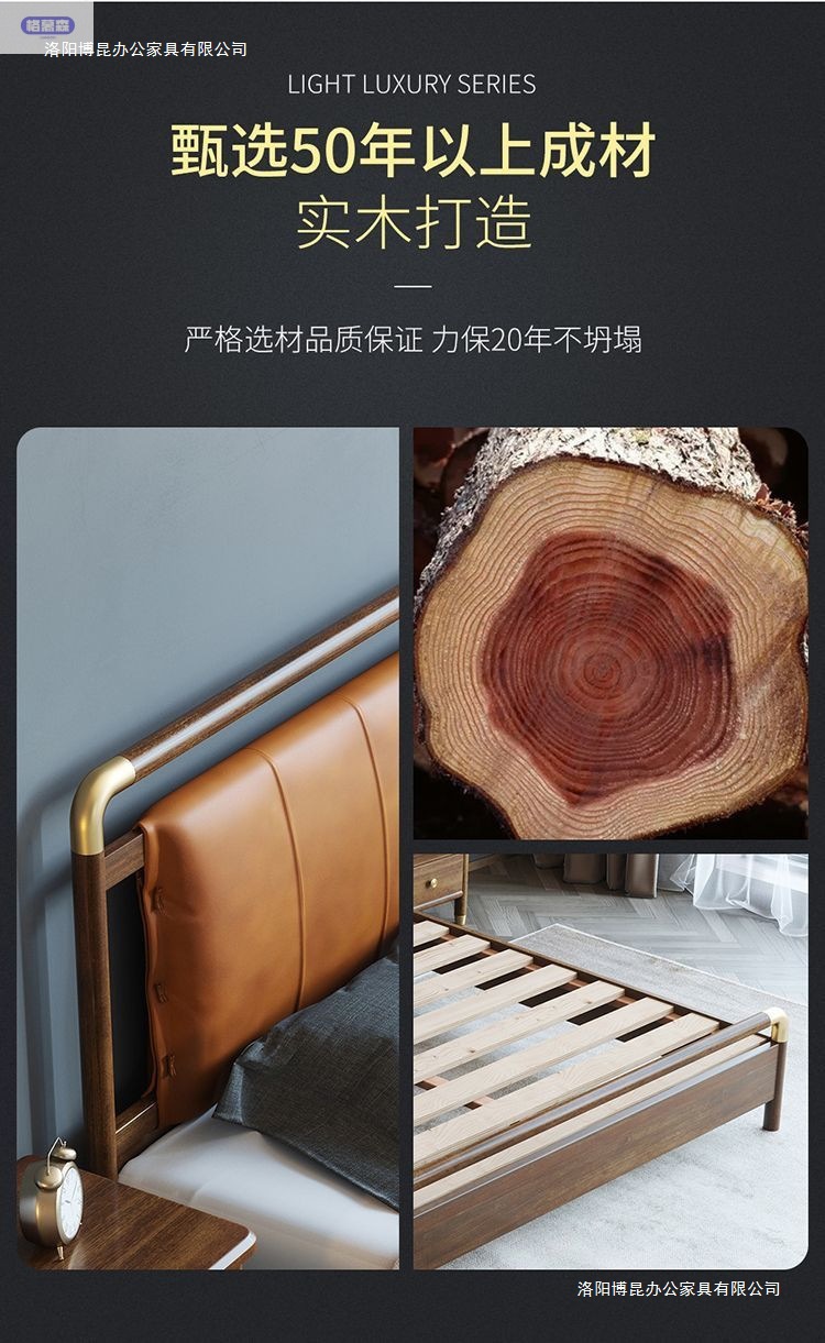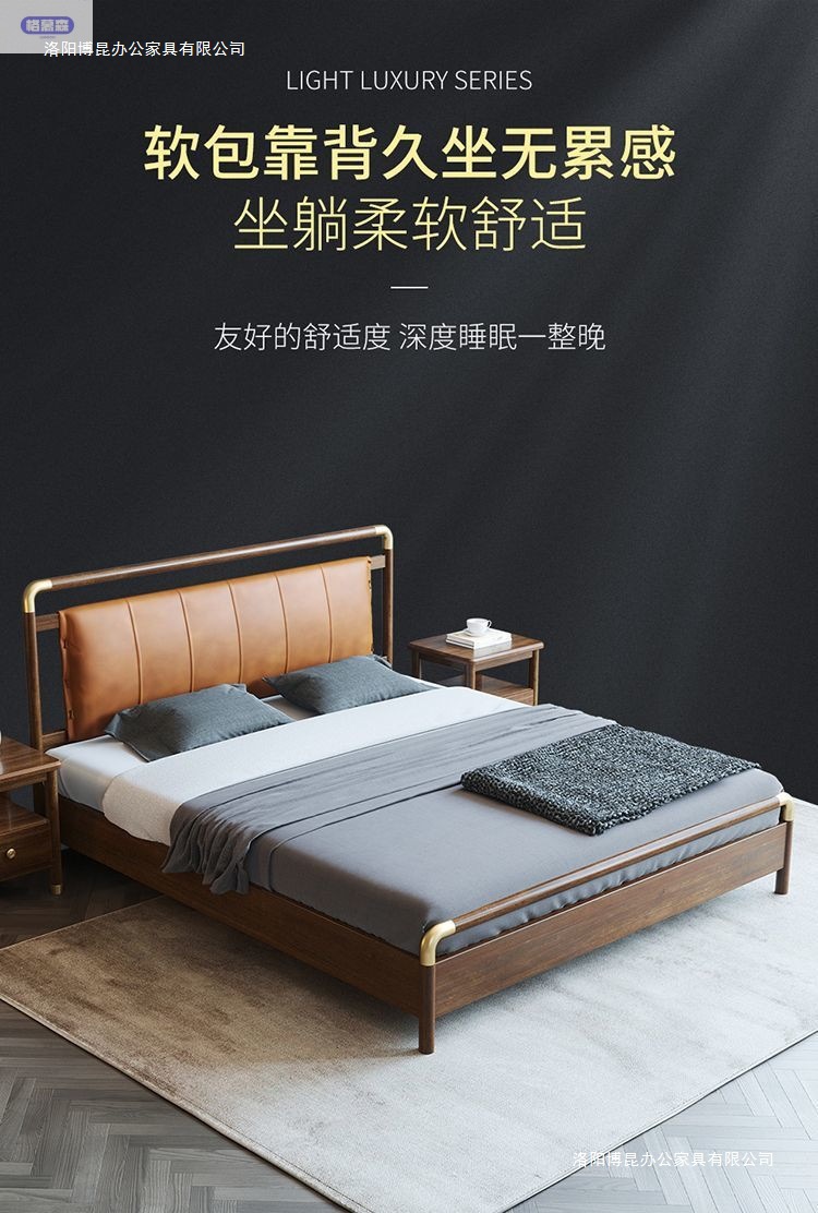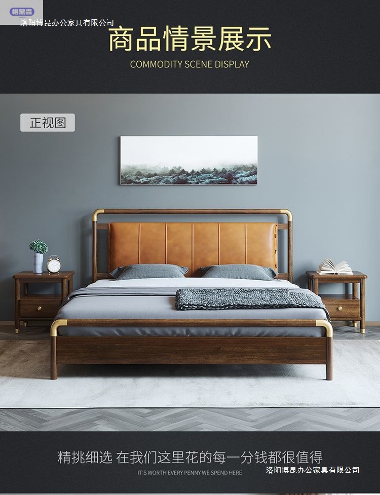 호두나무 침대, 모던하고 심플한 마스터 침실, 더블 침대, 부드러운 등받이, 홈 웨딩 침대, 대형 원목 모델스토어 가기