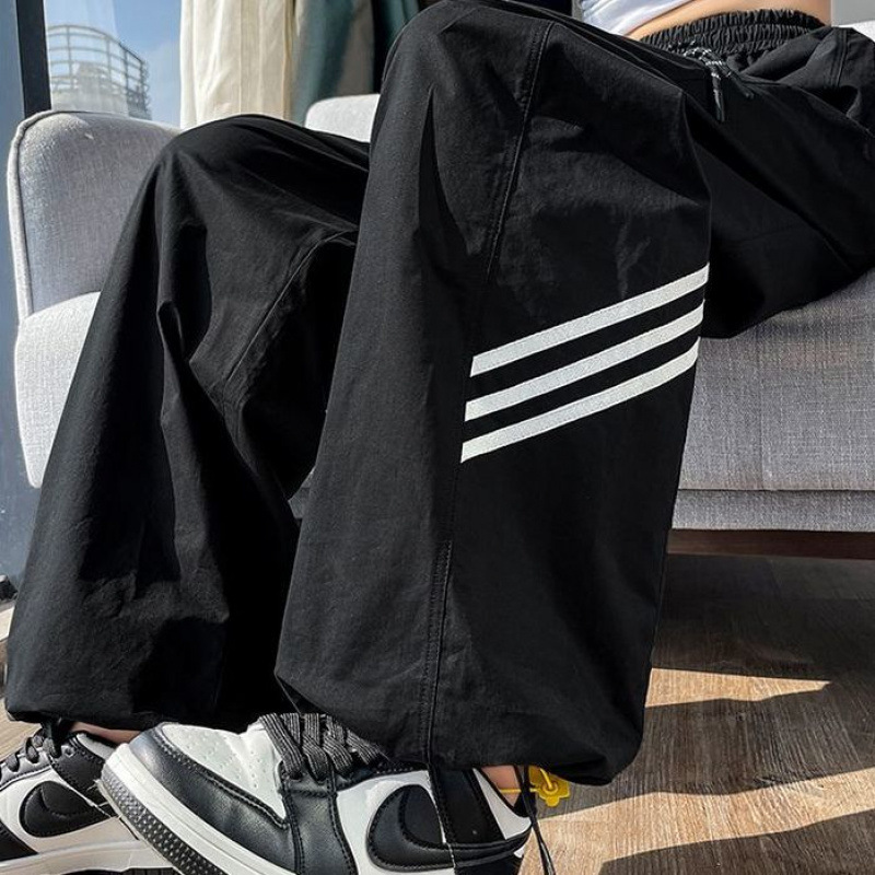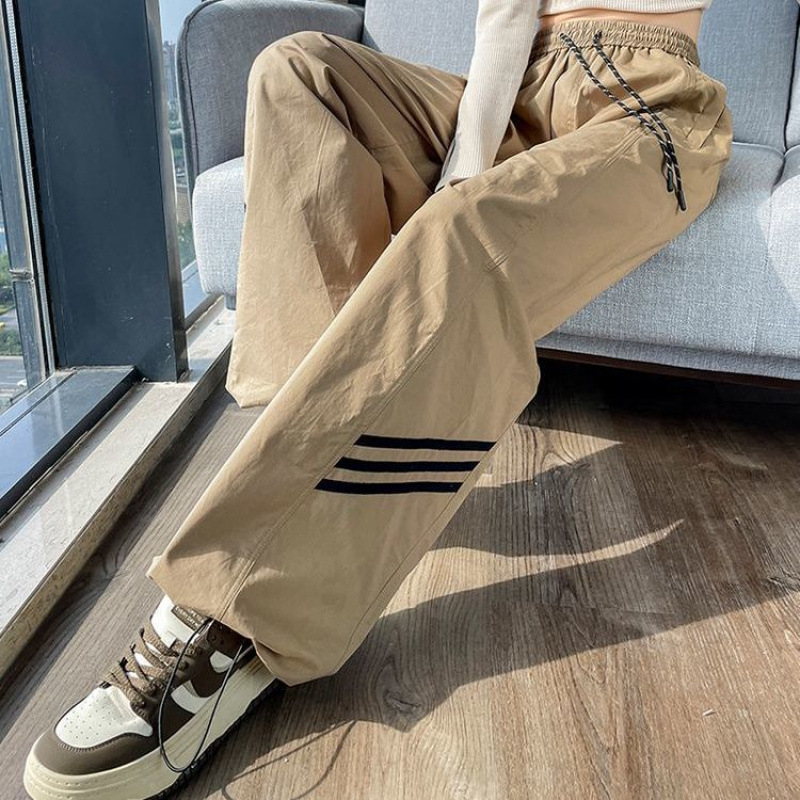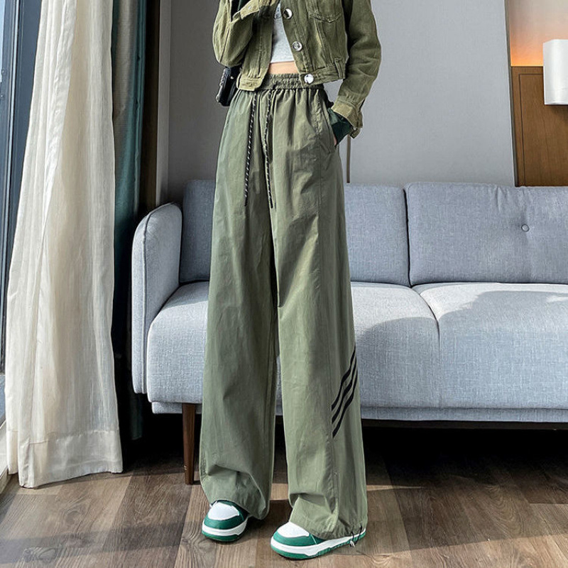 여성을위한 미국 복고풍 스포츠 작업복 2025 새로운 봄 드로우 스트링 하이킹 바지 하이 웨이스트 스트레이트 와이드 레그 팬츠