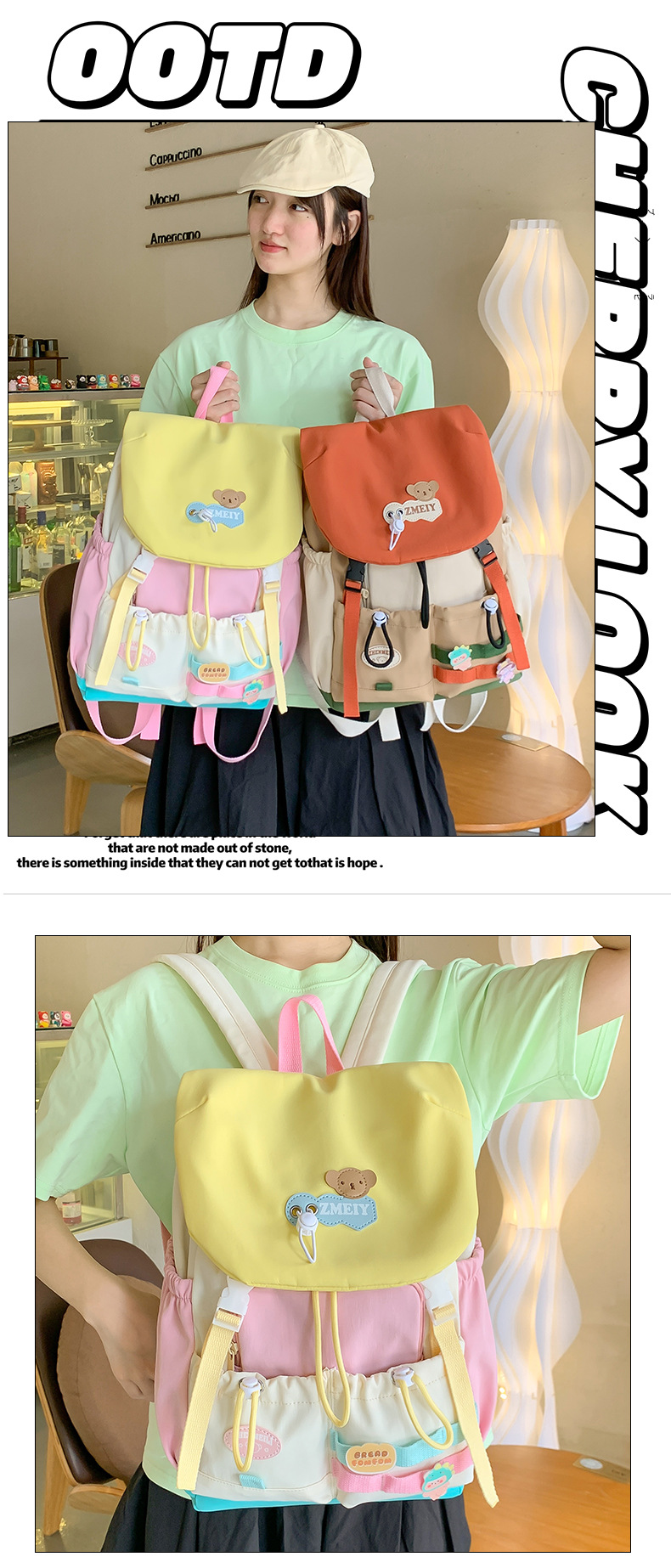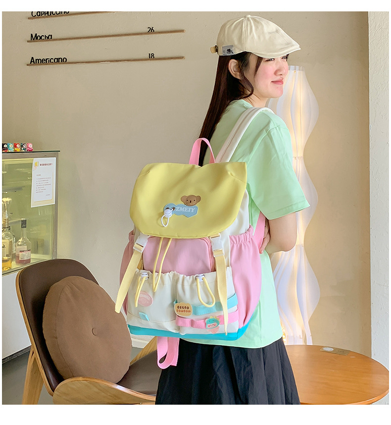 도파민 대비 색상 고급 배낭 여성 대용량 중학생 초등학교 가방 야외 여행 등산 가방스토어 가기