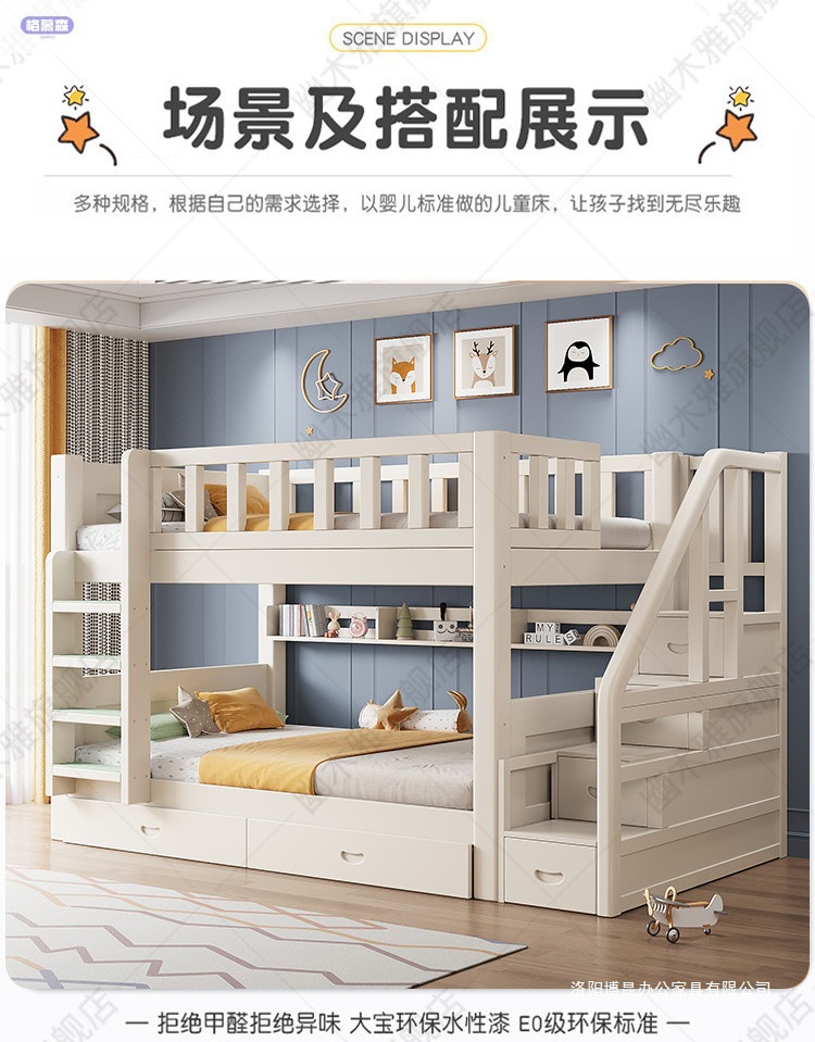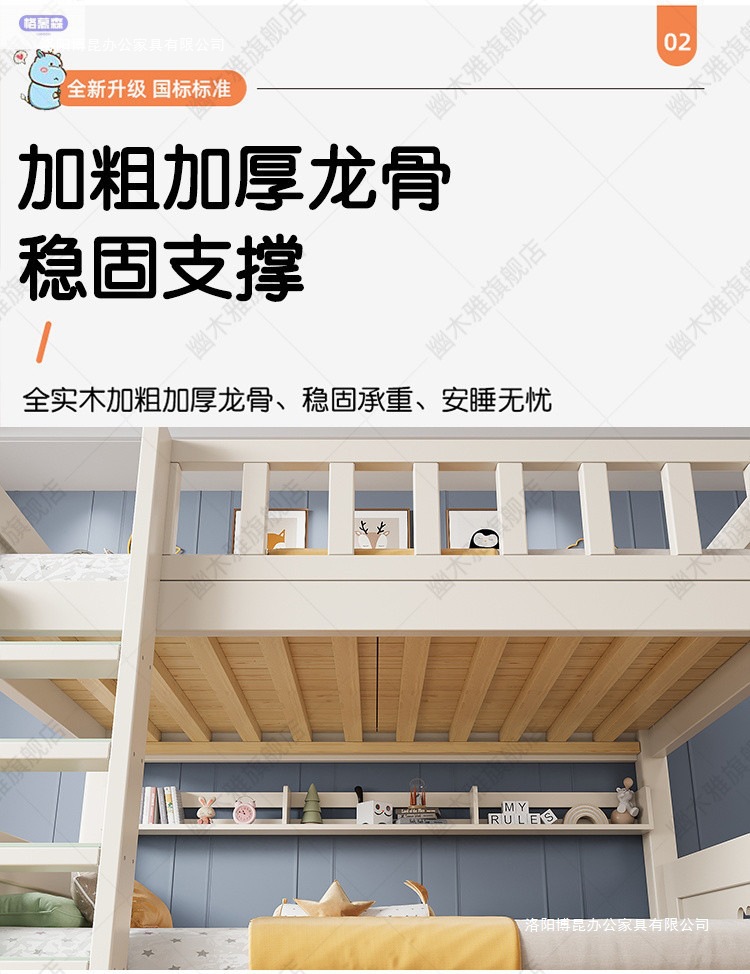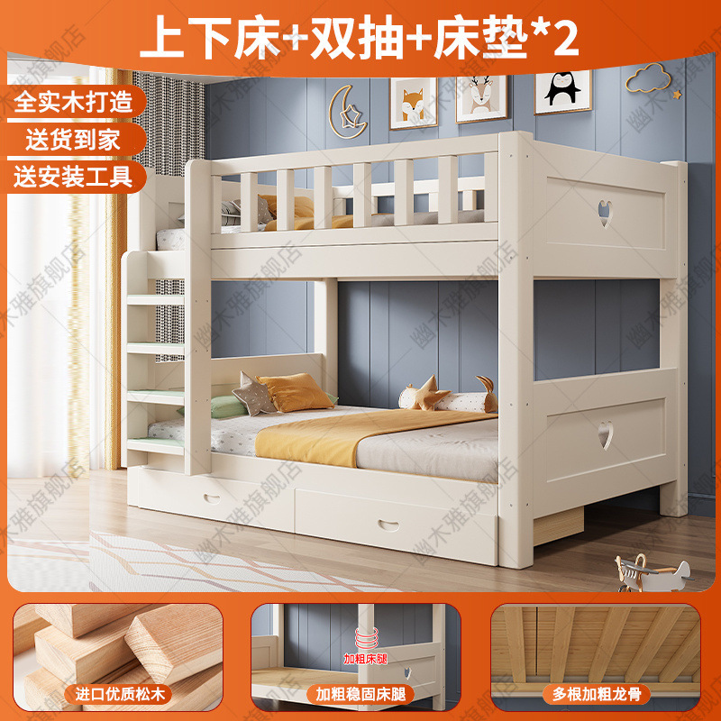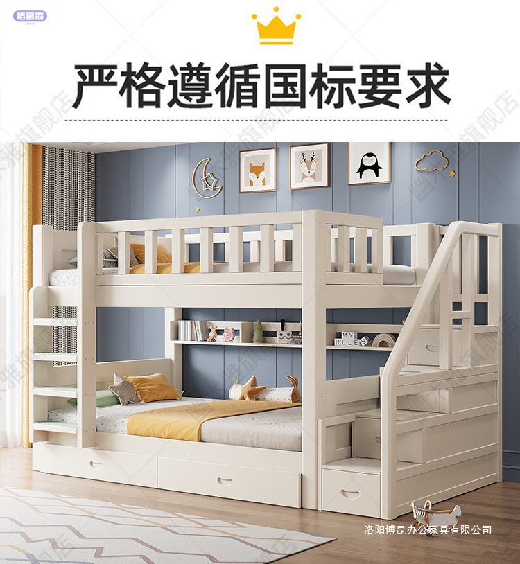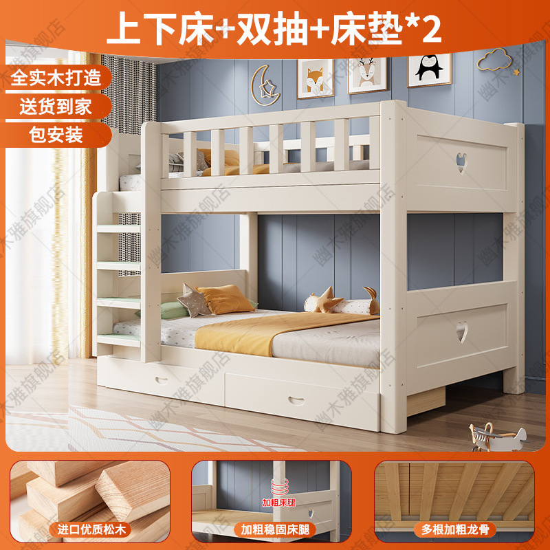 원목 어린이 침대, 성인용 이층 침대, 성인용 이층 침대, 높낮이 다기능 두꺼운 케이블 이층 침대스토어 가기