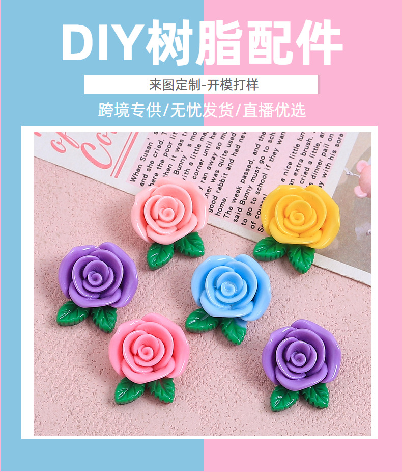 크리 에이 티브 장미 신선한 꽃 만화 수제 diy 크림 접착제 수지 액세서리 작은 액세서리 보석 재료 도매스토어 가기