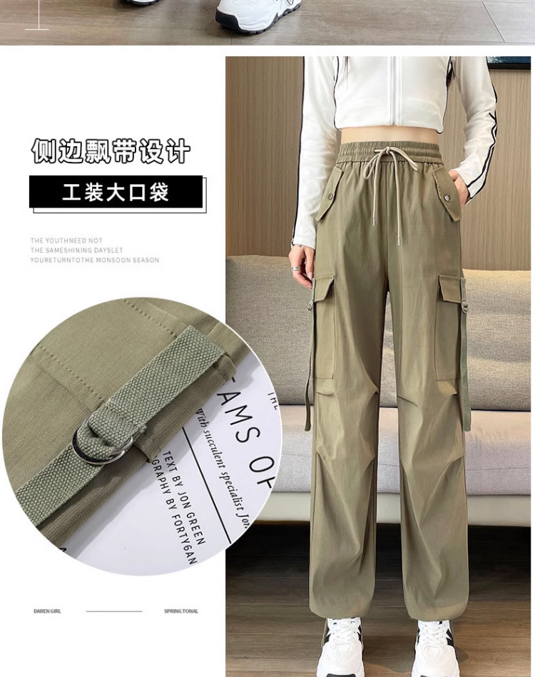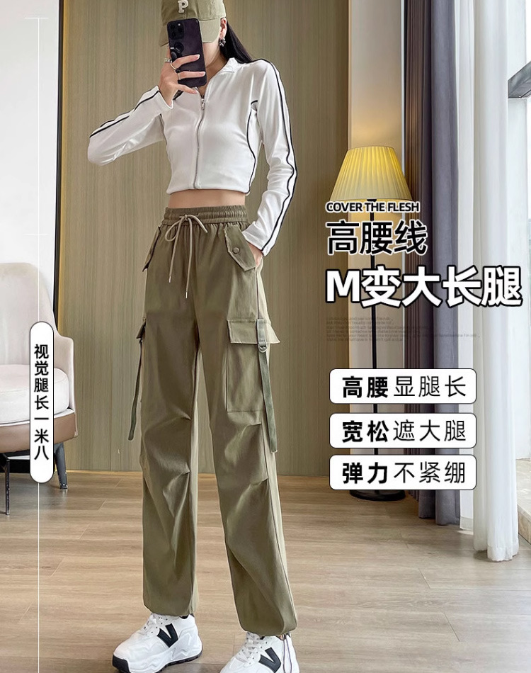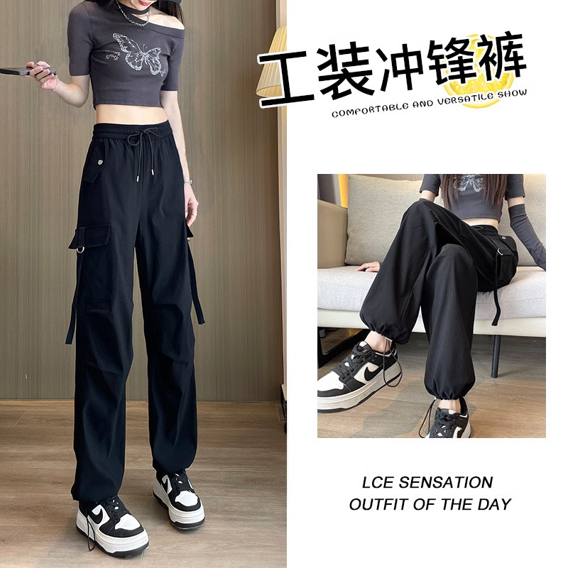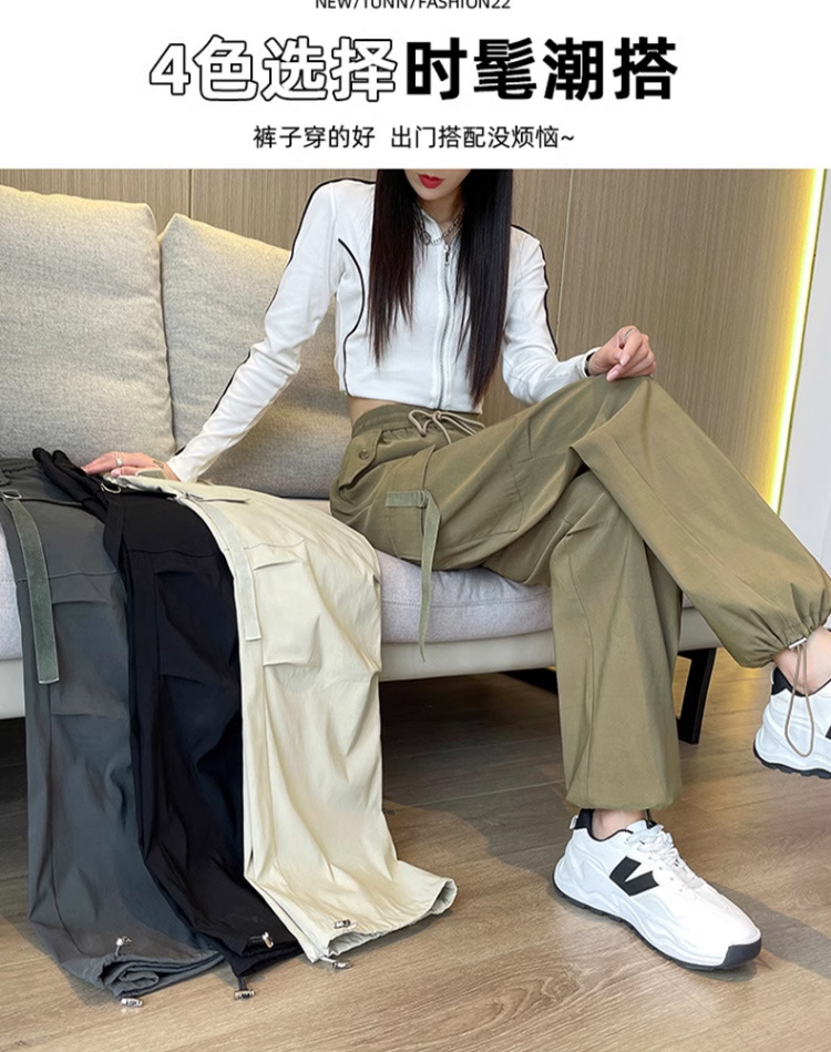 여성용 방수 어썰트 바지 2025 봄 여름 새로운 스타일 하이 웨이스트 슬림 아메리칸 스포츠 스트레이트 하이킹 바지