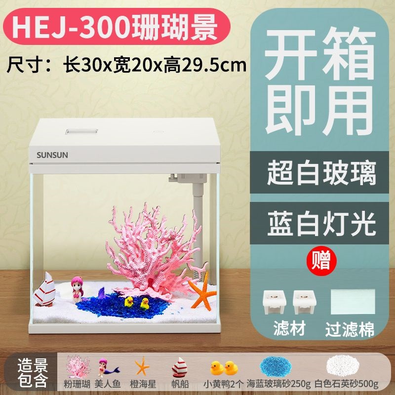 초백색 유리 수조 자체 순환 거실 소형 데스크탑 가정용 금붕어 수조 유리 게으른 수족관스토어 가기