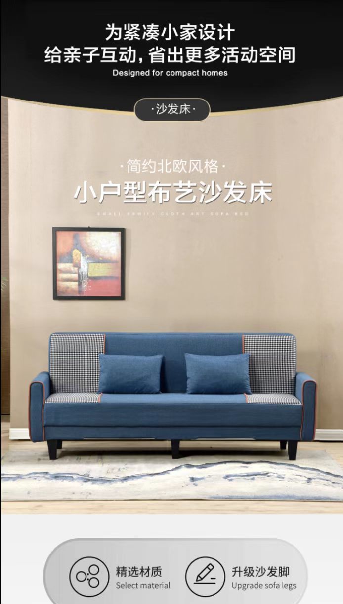 다기능 소파, 접이식 겸용, 거실, 소형 가정, 침실, 패브릭 임대 주택, 게으른 소파 베드 공급망스토어 가기