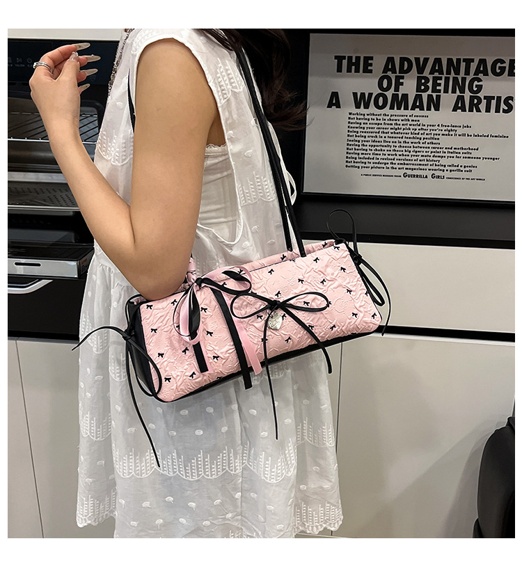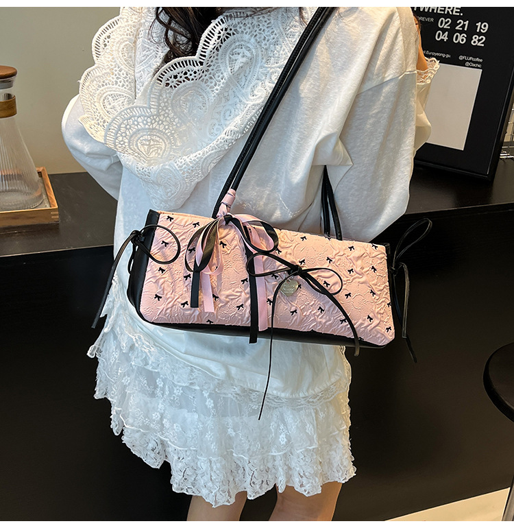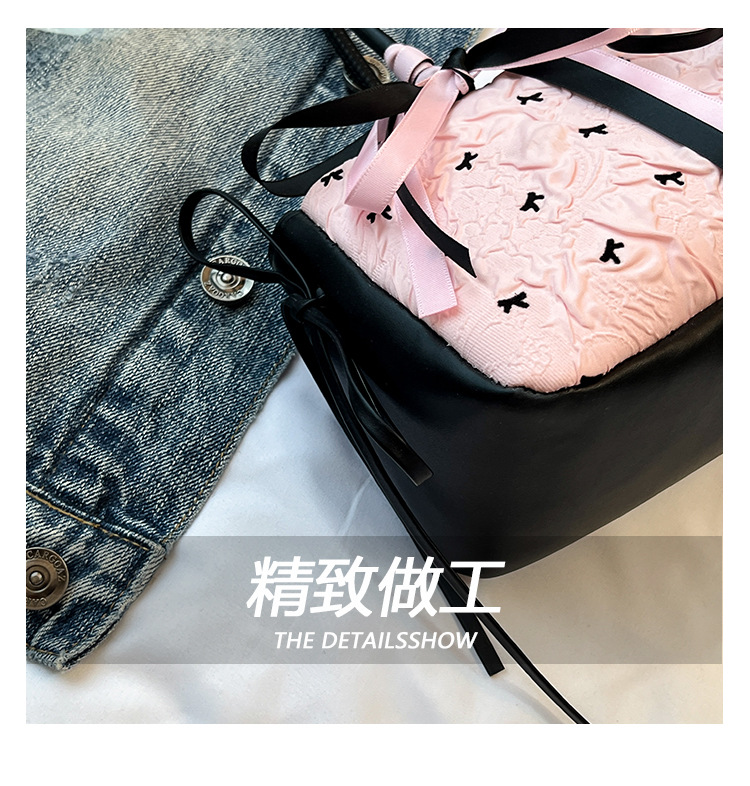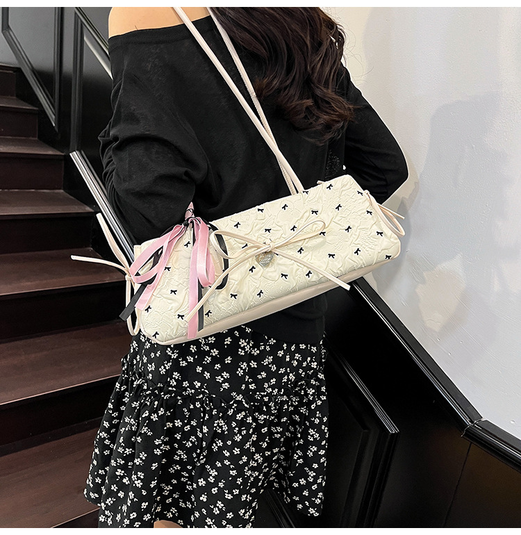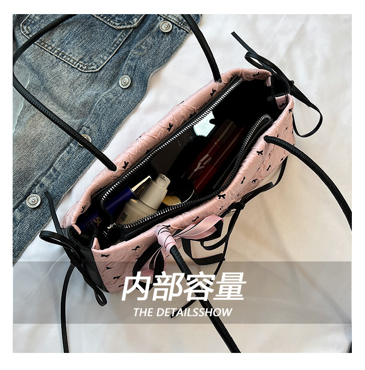 달콤한 버킷 백 여성용 가방 2025 뉴 여름 보우 숄더 백 예술적 캐주얼 통근 휴대용 소형 사각형 가방스토어 가기