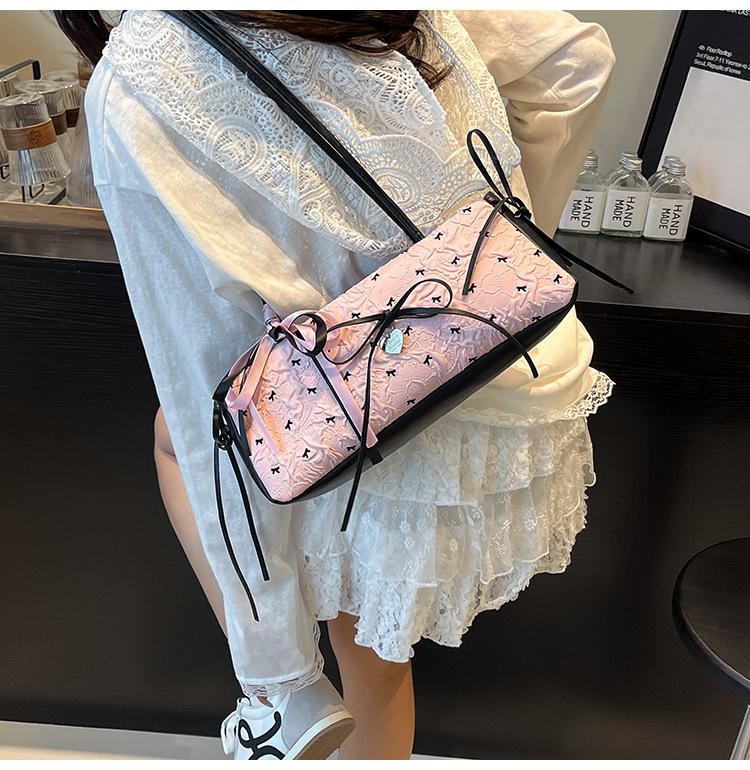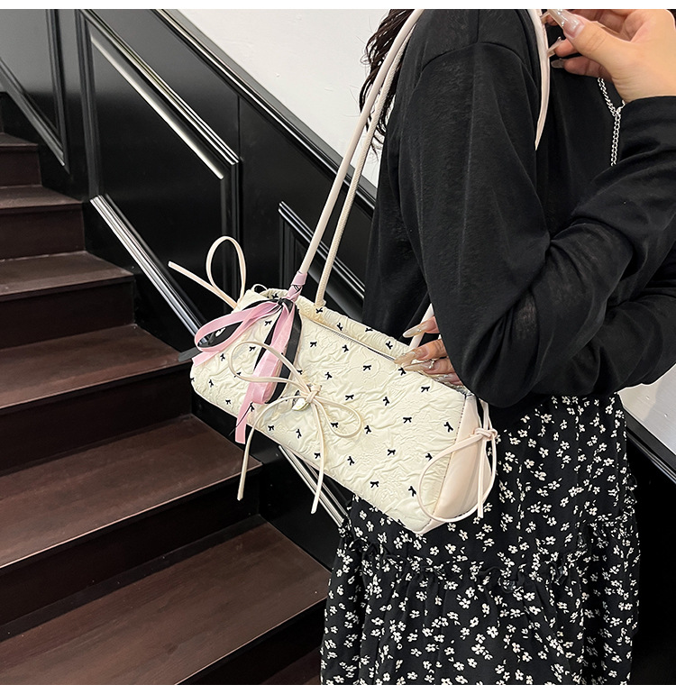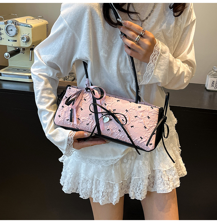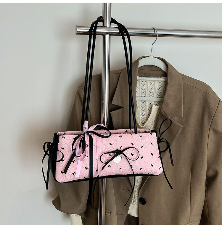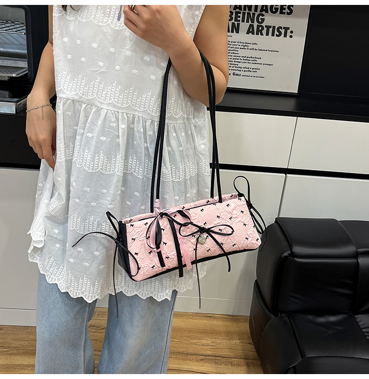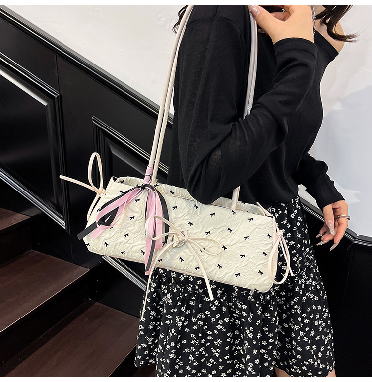 달콤한 버킷 백 여성용 가방 2025 뉴 여름 보우 숄더 백 예술적 캐주얼 통근 휴대용 소형 사각형 가방스토어 가기
