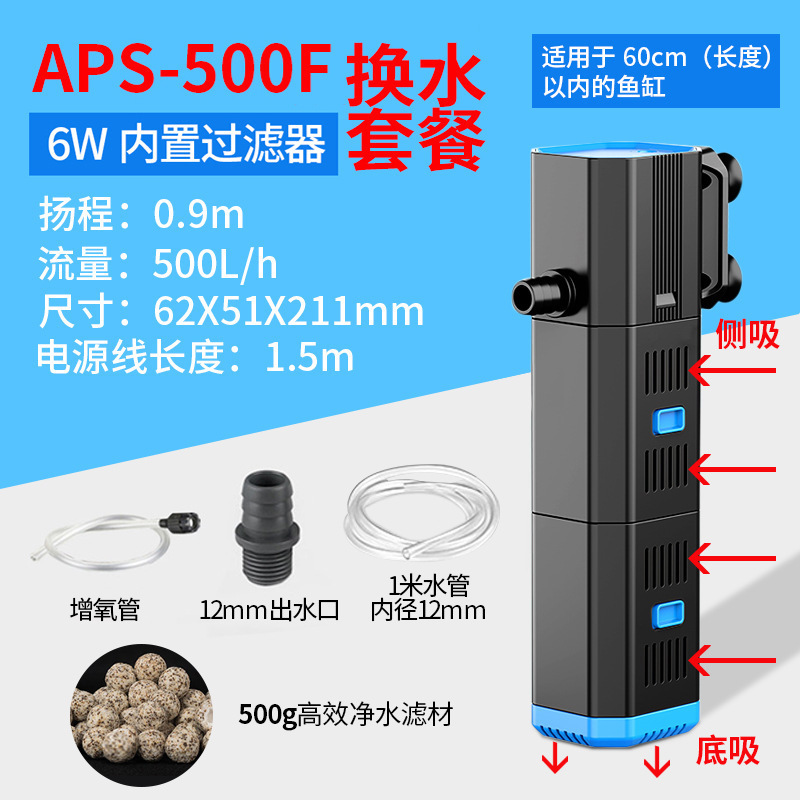 물고기 탱크 필터 내장 3-in-1 정수 순환 펌프 가정용 물고기 키우기 소형 산소 펌프 올인원 기계