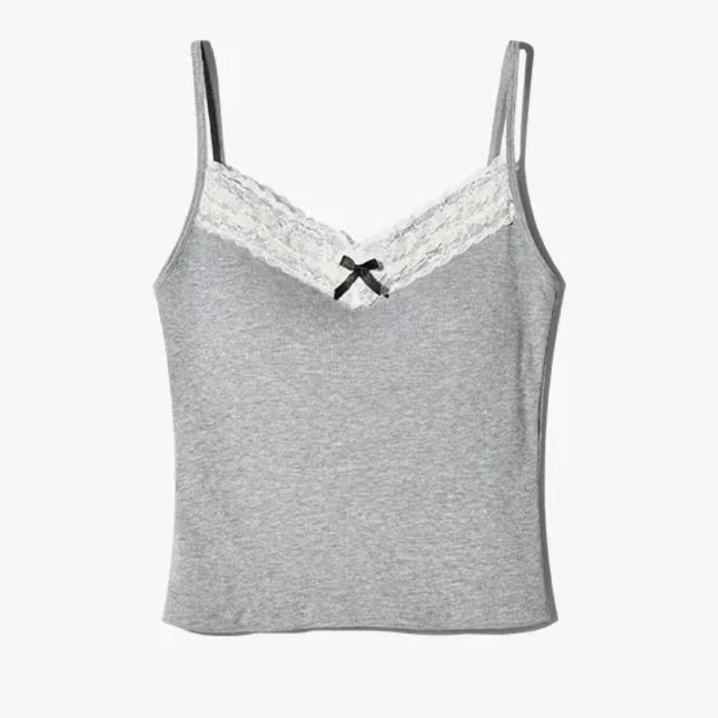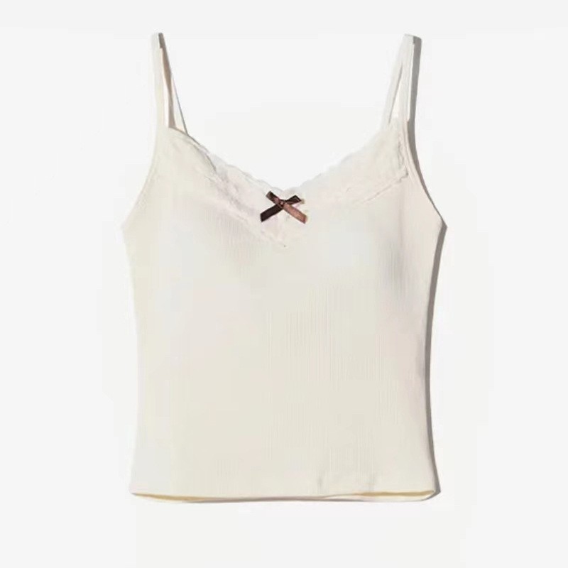 퓨어 러스트 스위트 보우 레이스 서스펜더 백 베스트, 가슴 패드가 있는 올인원 가슴 외부 레이어드 쇼트 탑