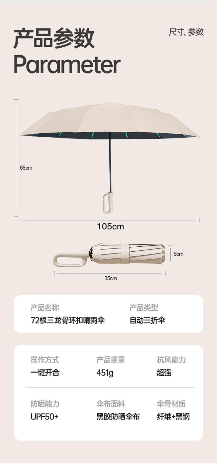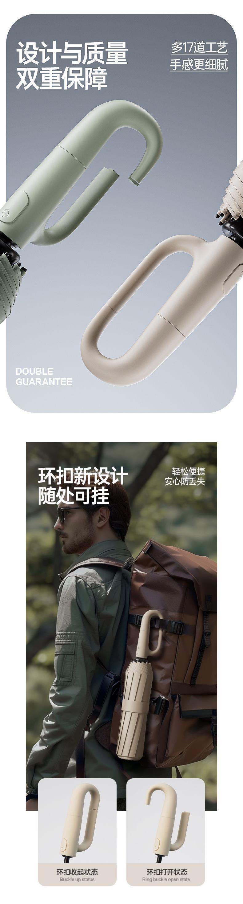 • [링 버클 시리즈] 80본 4용골 휴대용 후크 우산 - 우통 쌀