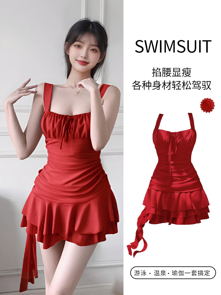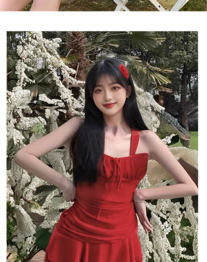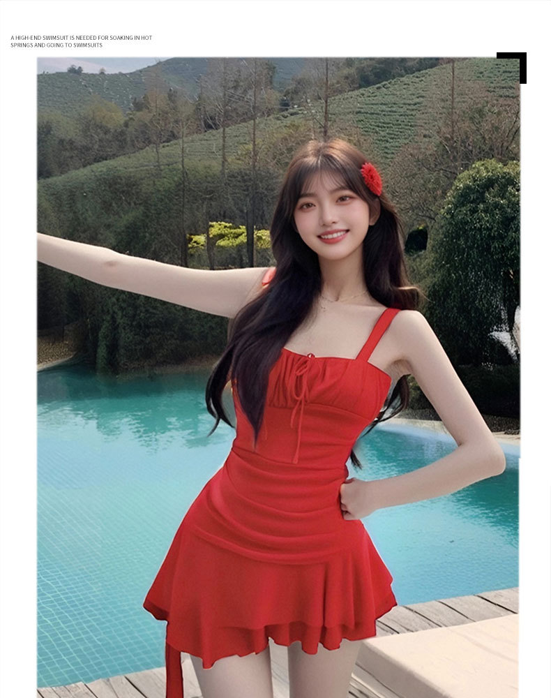여성용 수영복 여름 미백 해변 휴가 순수한 욕망 작은 빨간 드레스 드레스 스타일 온천 휴가 수영복 도매스토어 가기