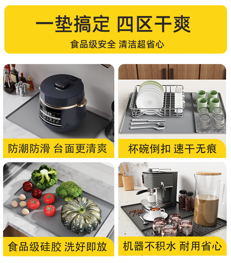 아마존 인기 상품 식품 등급 실리콘 매트 바 카운터 방수 매트 전자레인지 미끄럼 방지 배수 커피 머신 실리콘 매트스토어 가기