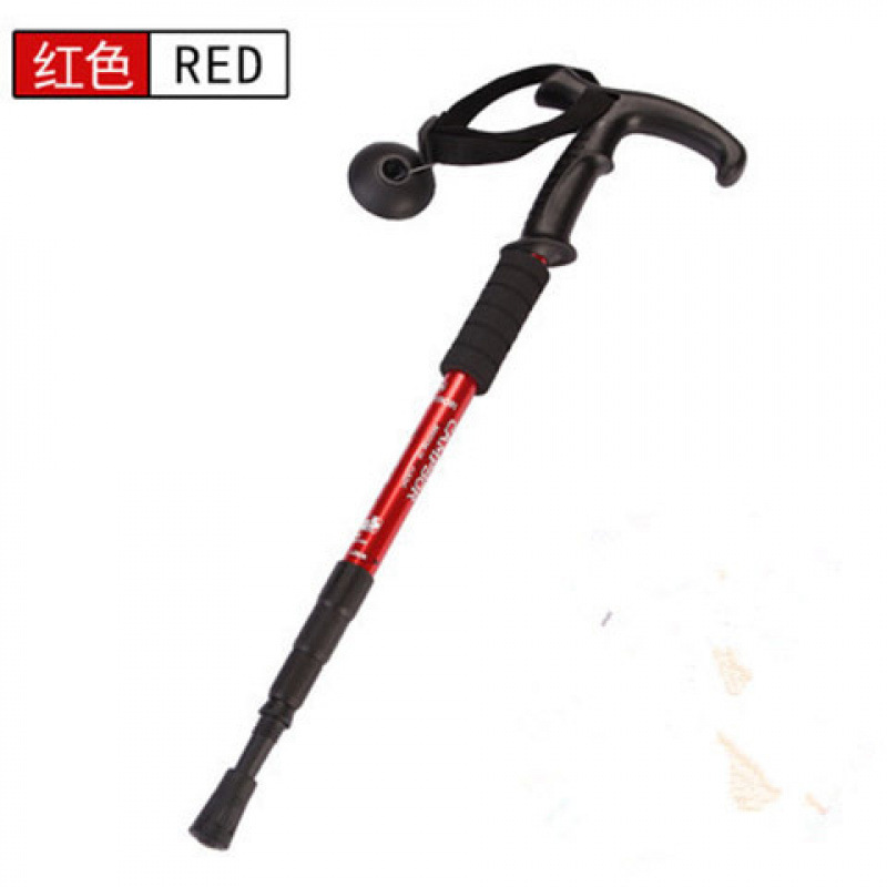• √ 4단 등산 스틱 곡선형 손잡이 - 레드 --- 엄선된 우수 상품