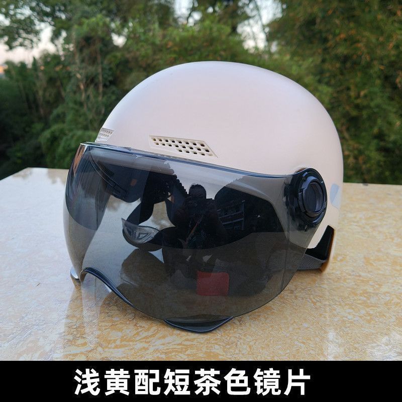 • 짧은 투명 렌즈가 있는 오리지널 컬러 여름 헬멧 - 연한 노란색