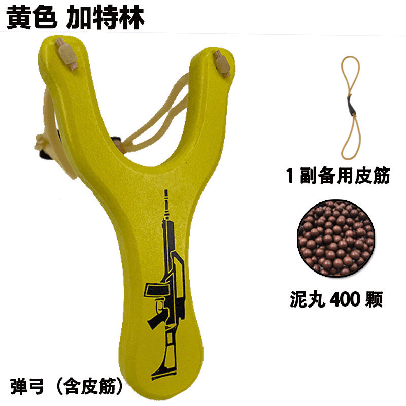 • 노란색 개틀링 새총 + 예비 고무줄 1개 + 진흙탄 400개