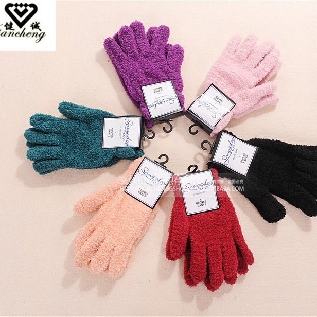 겨울 장갑 니트 장갑 두꺼운 따뜻한 전체 손가락 장갑 학생 한국어 버전 멀티 컬러 캔디 컬러 산호 벨벳 크로스 보더스토어 가기