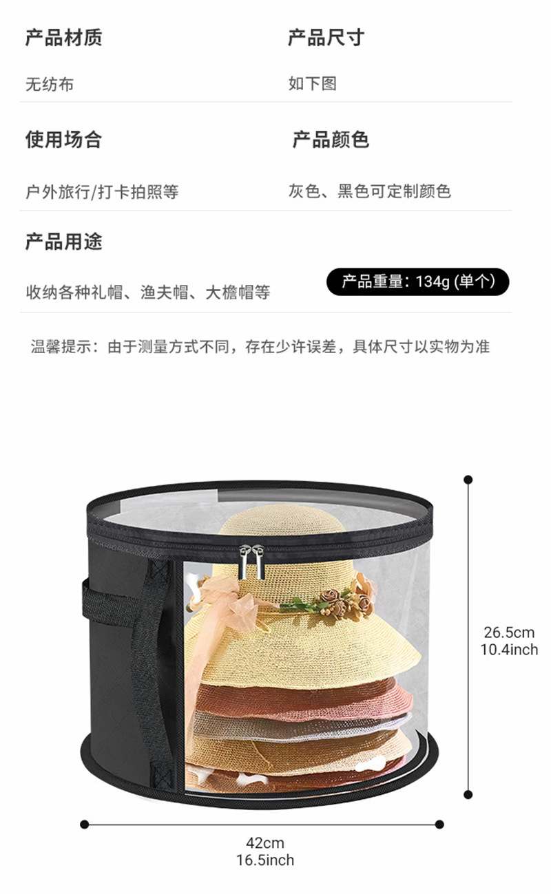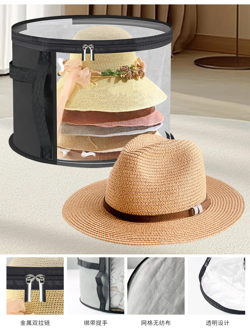 휴대용 여행용 모자 보관 가방, 손잡이가 있는 모자 보관함, 쌓을 수 있는 둥근 챙 모자 보관 가방, 투명스토어 가기