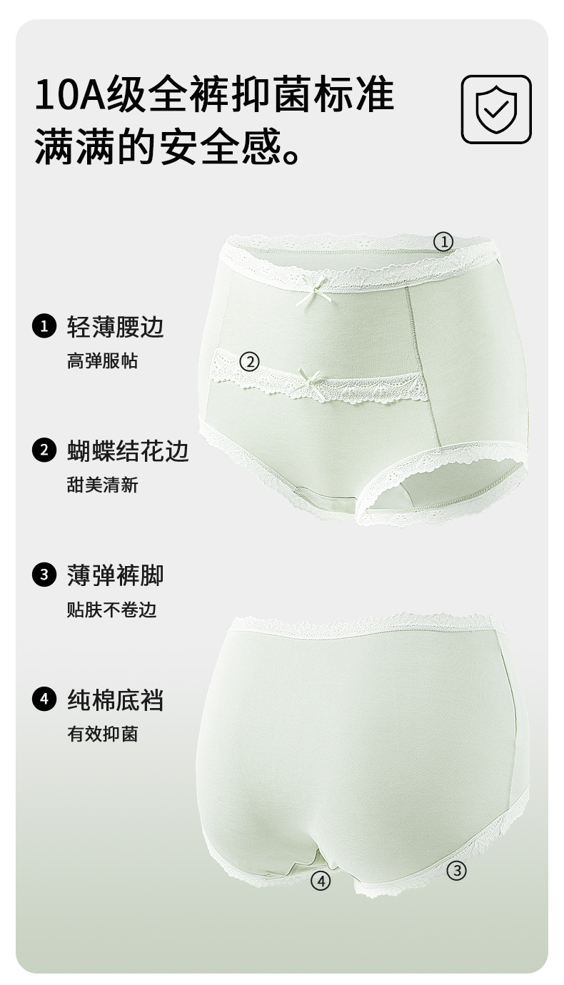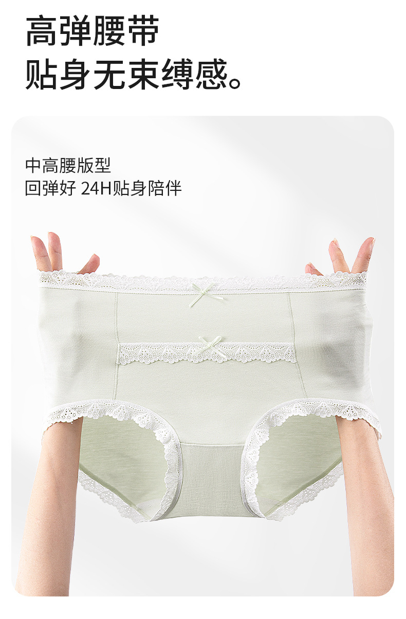레이스 모달 속옷 여성용 순면 확장 가랑이 10A 항균 반바지 통기성 흡습성 중간 하이 웨이스트 팬티