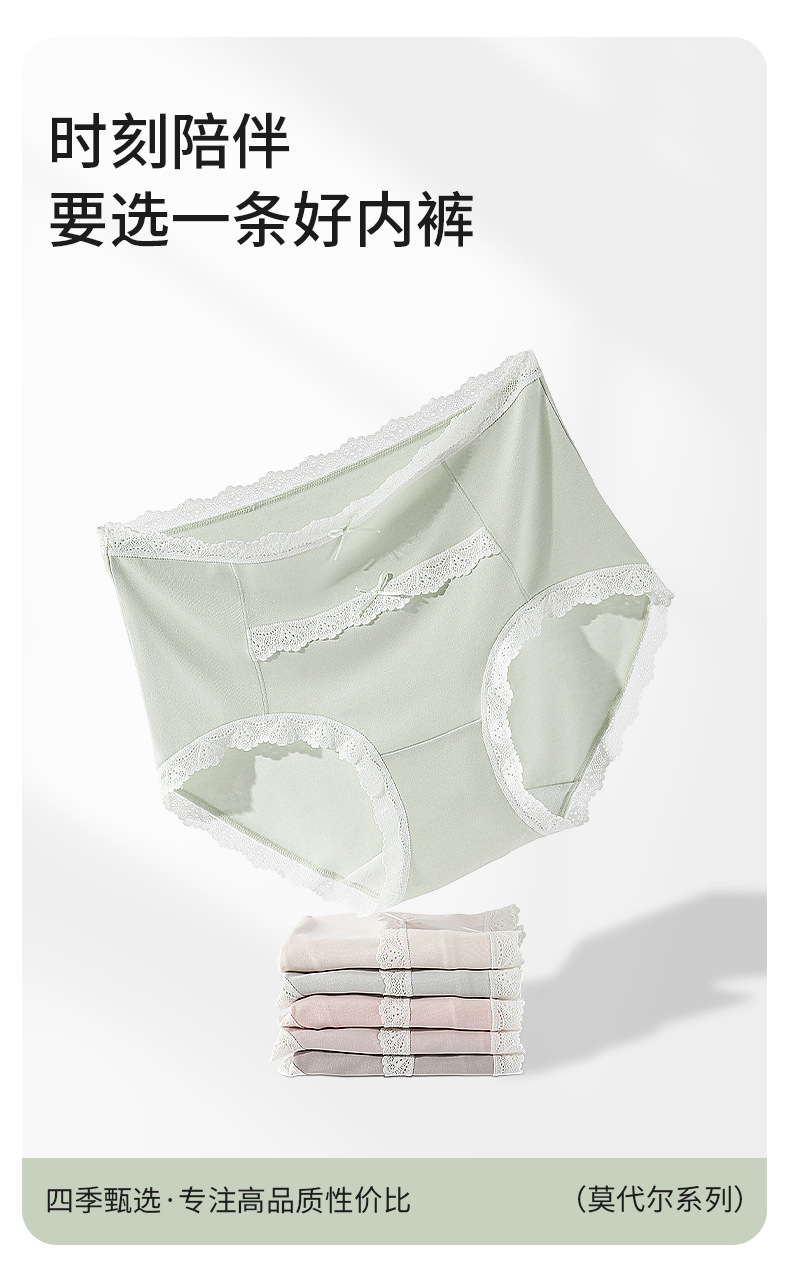 蕾丝莫代尔内裤女士纯棉加长裆10A抑菌短裤透气吸湿中高腰三角裤