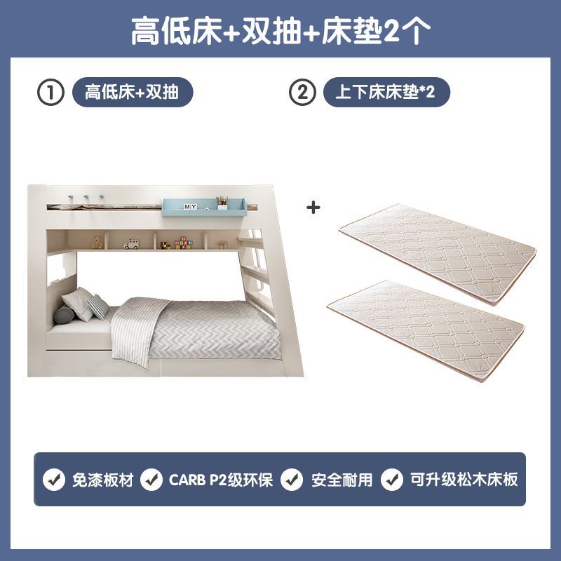 • 높고 낮은 침대 + 서랍 2개 + 매트리스*2 [배송 및 설치 포함]
