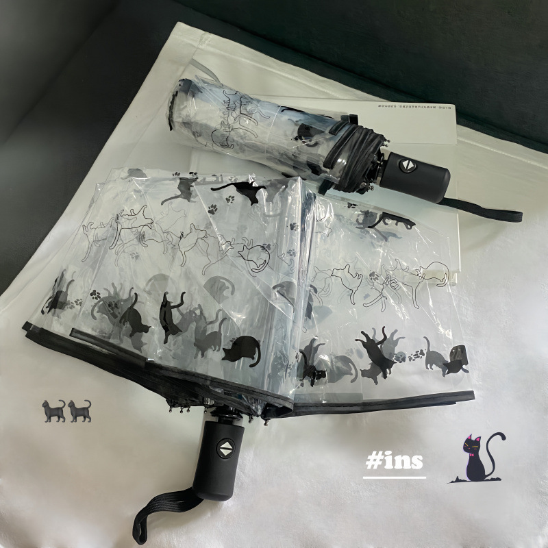• 검은 고양이 자동 투명 우산 - 고품질