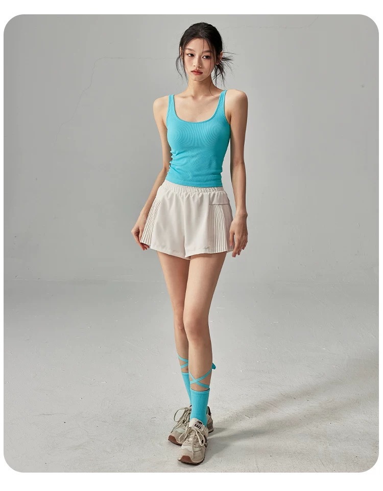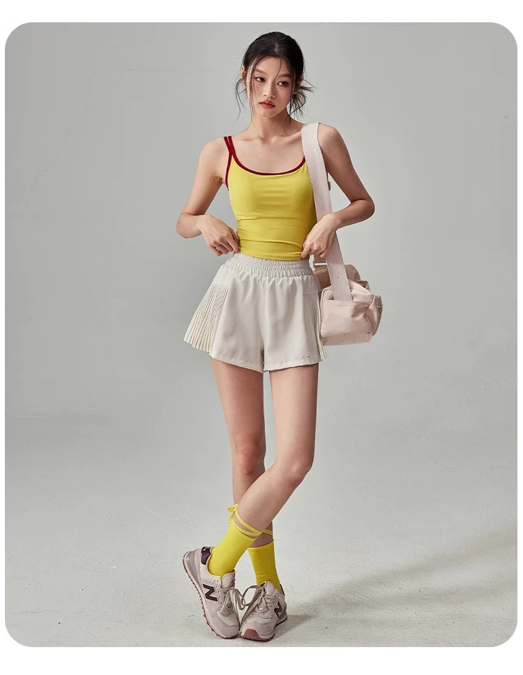 여성용 여름 스포츠 반바지 하이 웨이스트 노출 방지 러닝 트레이닝 필라테스 피트니스 플리츠 스커트 속건성 요가 반바지스토어 가기