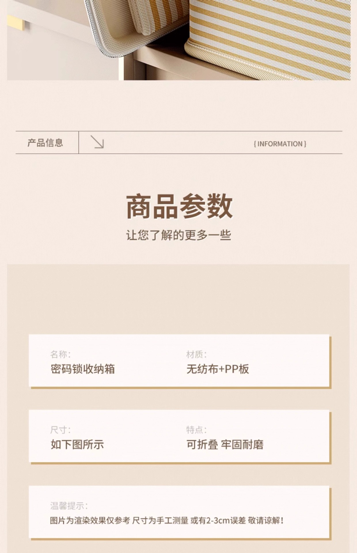• 베이지 스트라이프 [대형 사이즈(잠금 장치 포함)] 길이 45*가로 30*높이 30